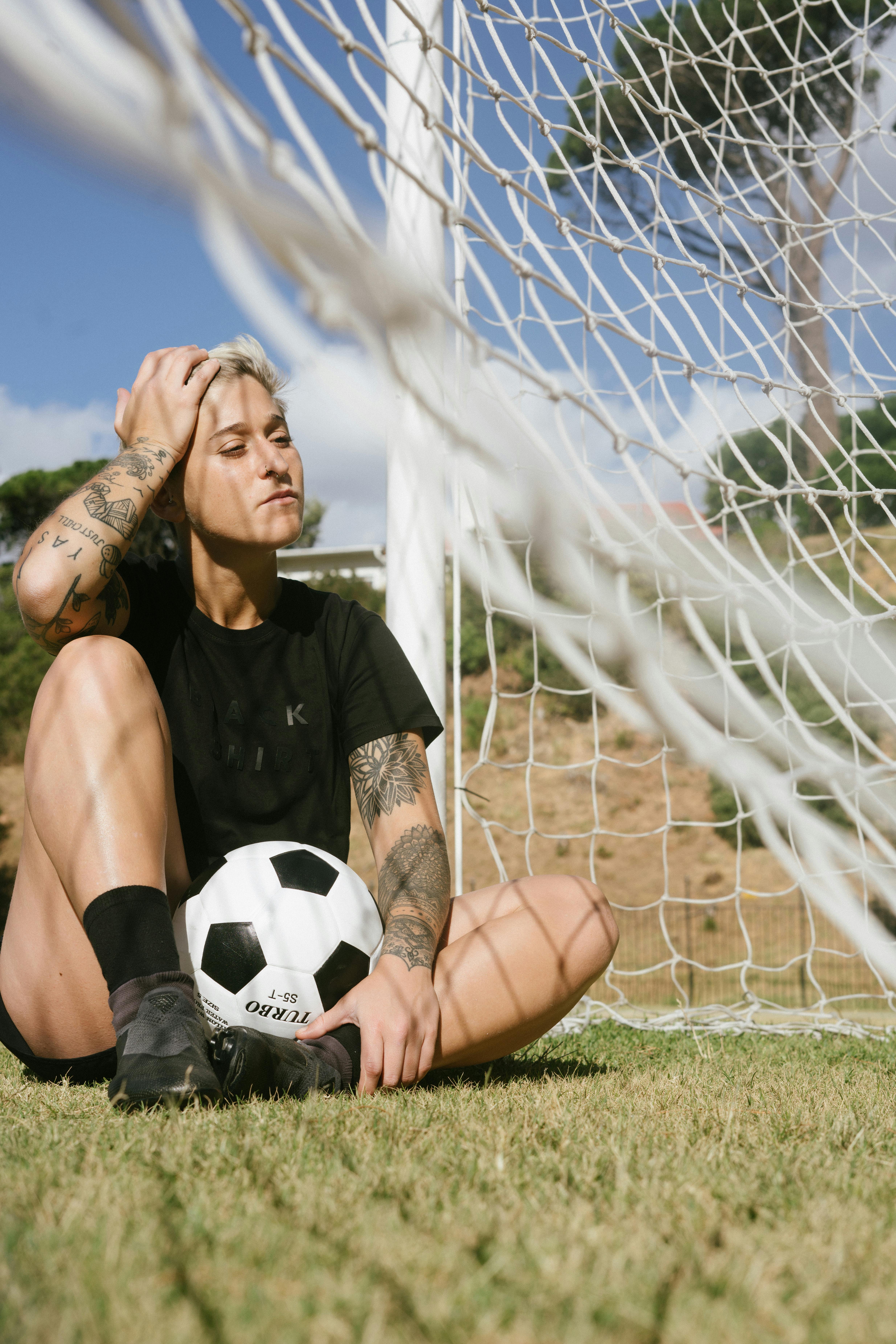 Person In Black Crew Neck T Shirt Sitting On Green Grass Field