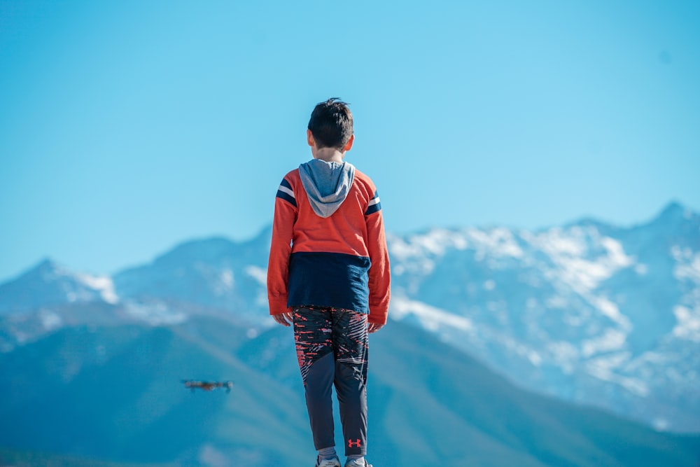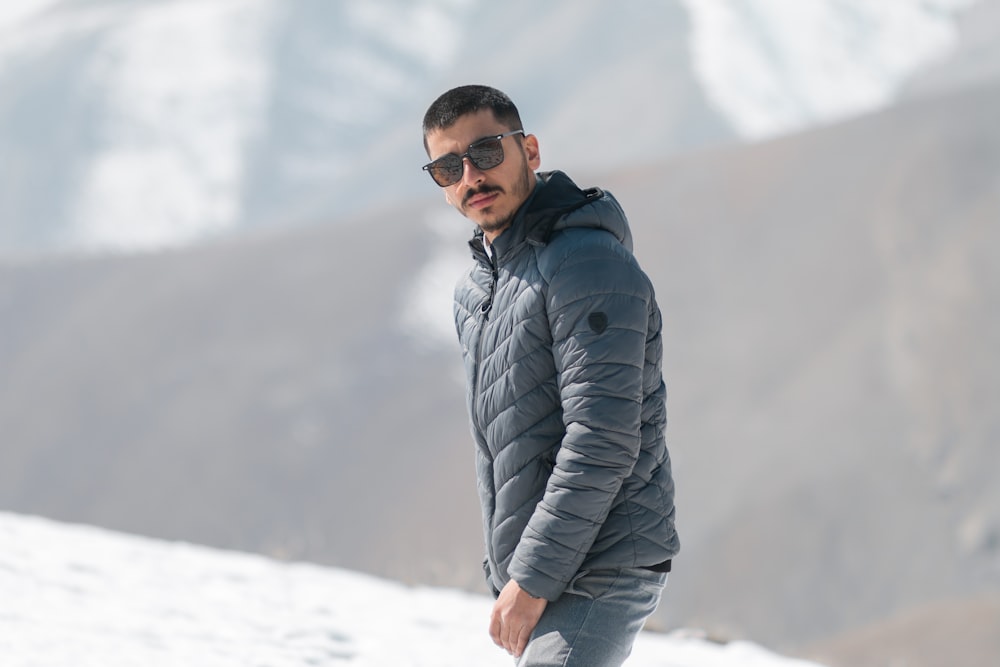 Man Wearing Blue Jacket Standing On Snow Covered Mountain Photo