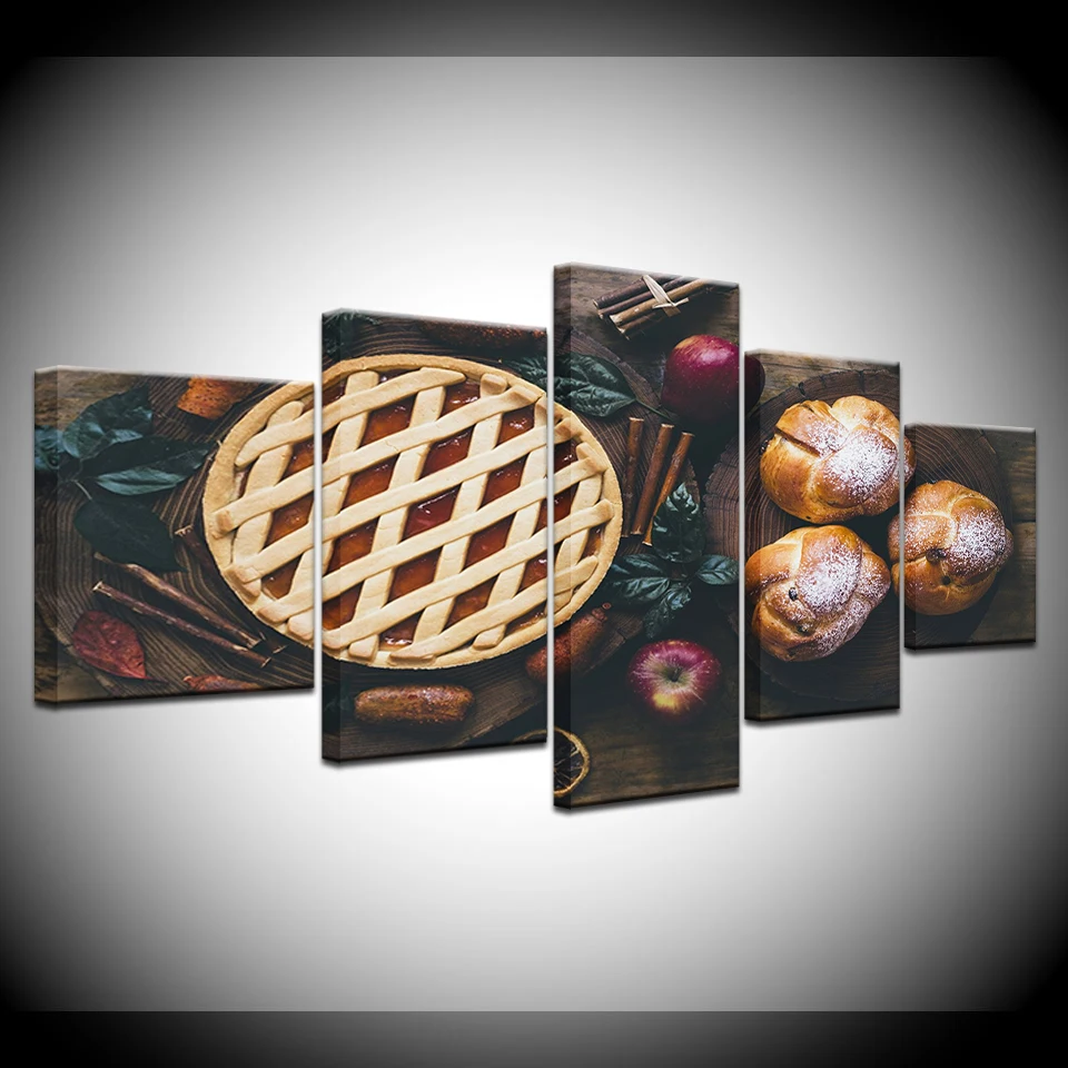 Bread And Fruit On Table 5 Piece Hd Wallpapers Art Canvas Print