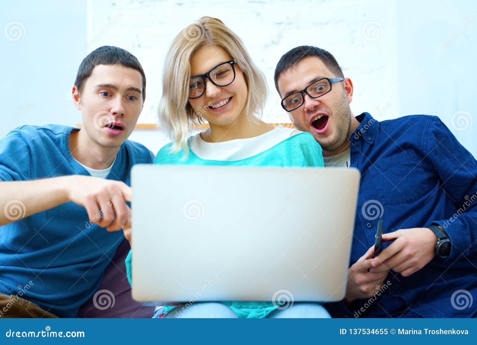 Friends Sit On The Couch Chatting And Using A Smartphone Desktop