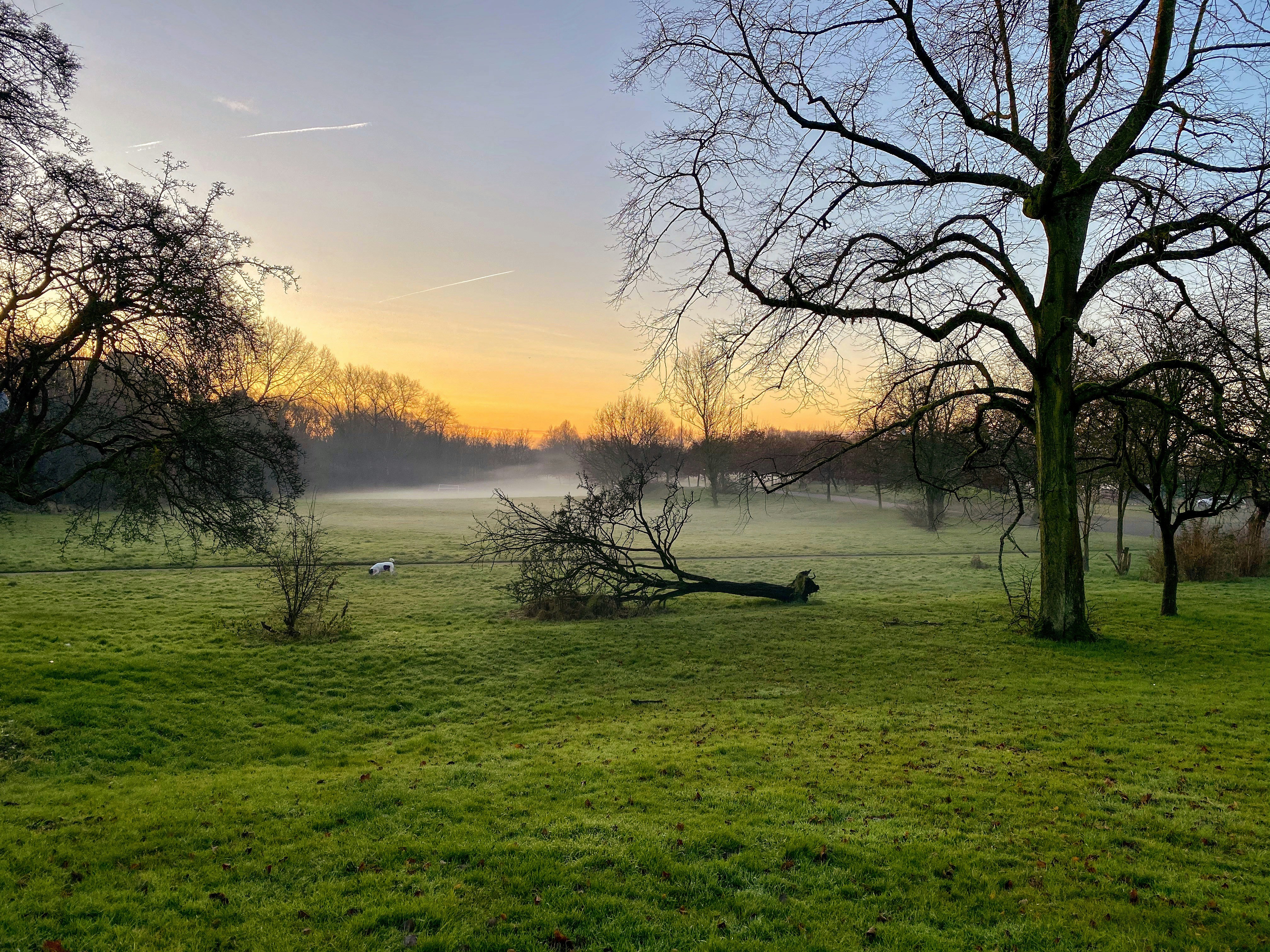 Fallen Bare Tree During Golden Hour Photo Free Grass Image On