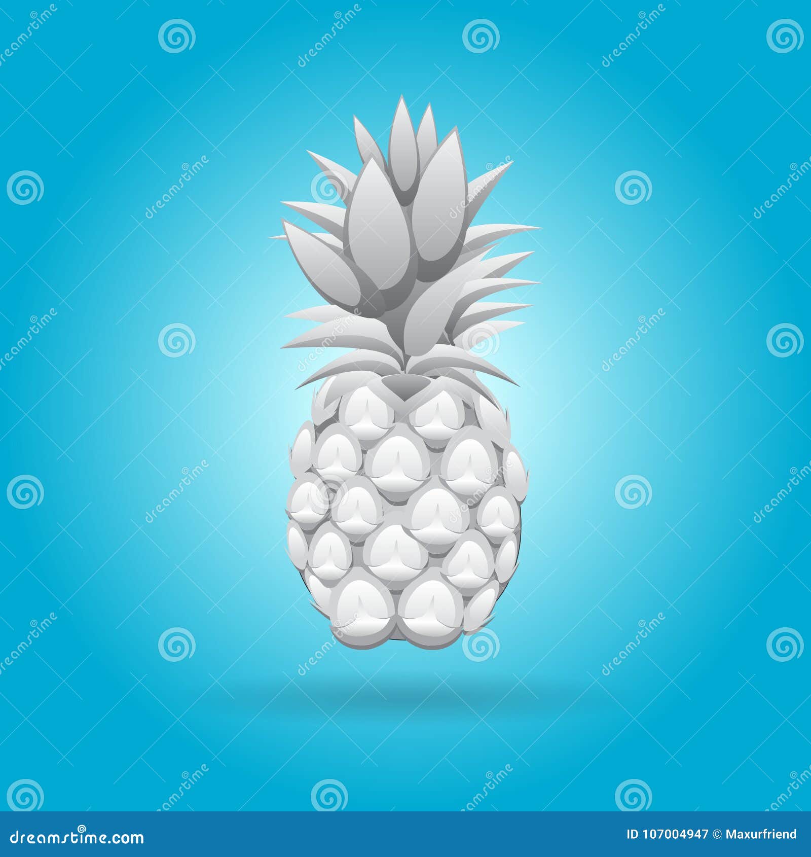 Grey 3d Pineapple Fruit Contour Abstract Seamless Pattern On Aqua