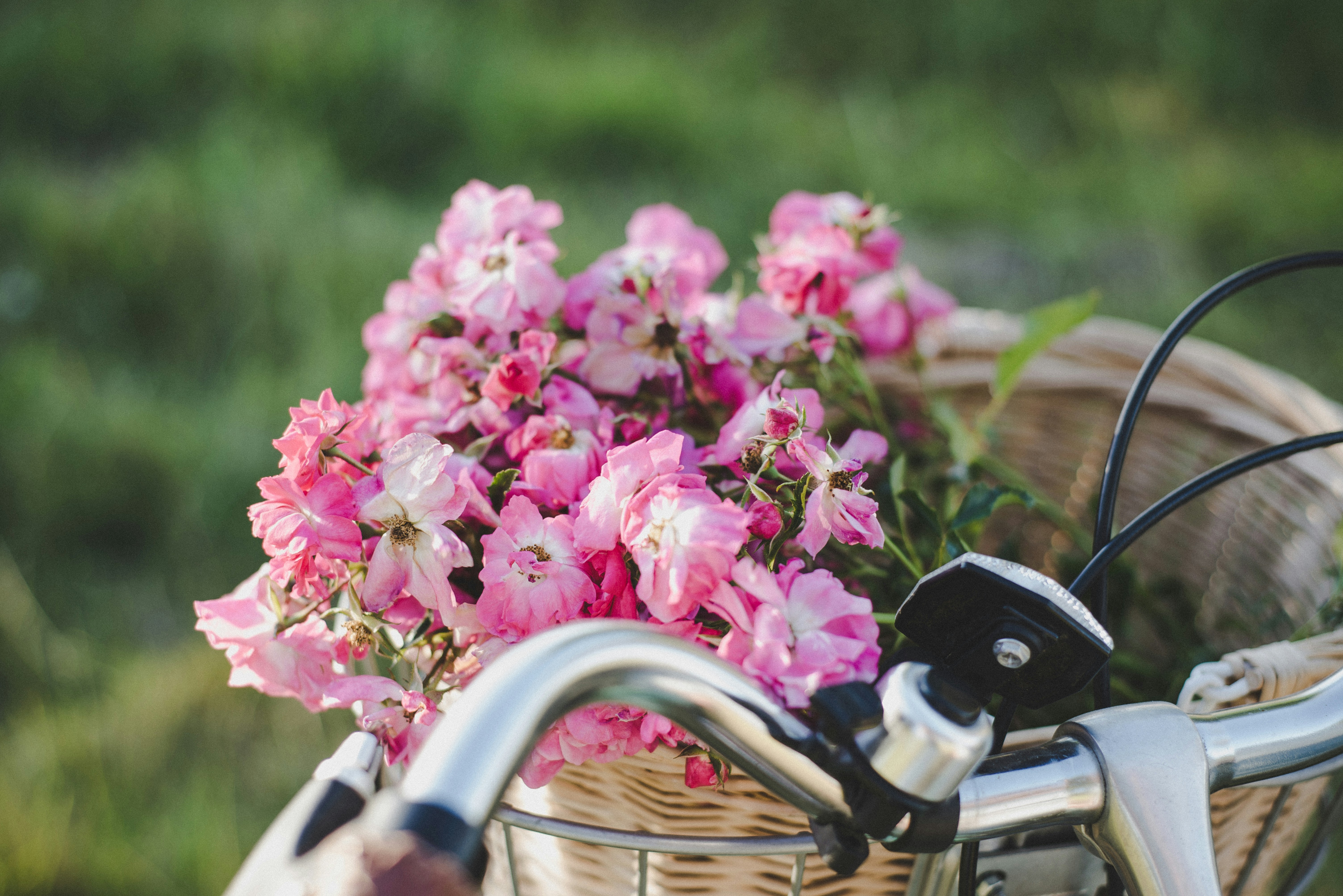Pink And White Flower In Bicycle Basket Photo Free Flower Image