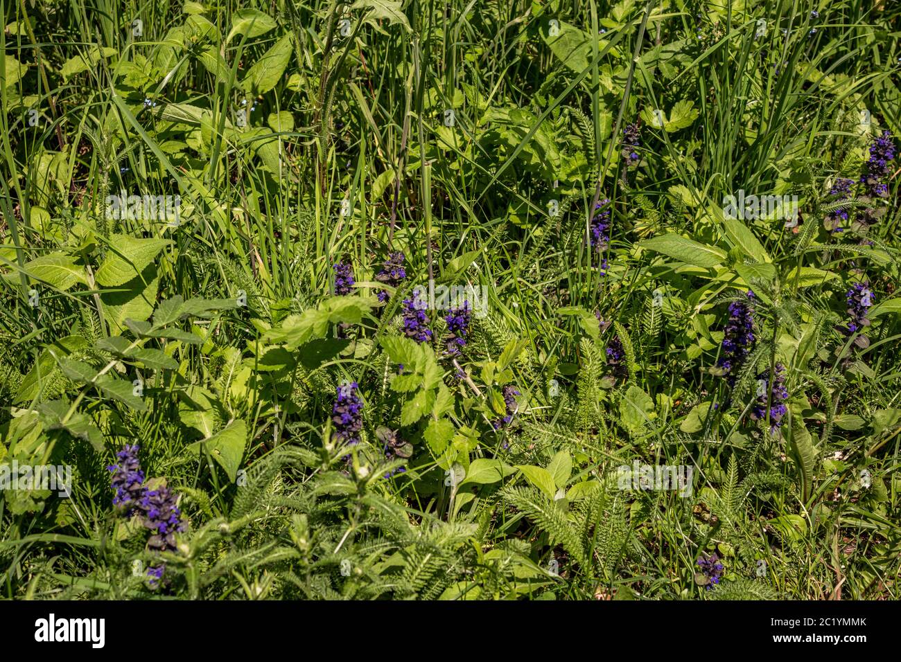 High Angle Selective Focus Shot Of Beautiful Small Purple Flowers