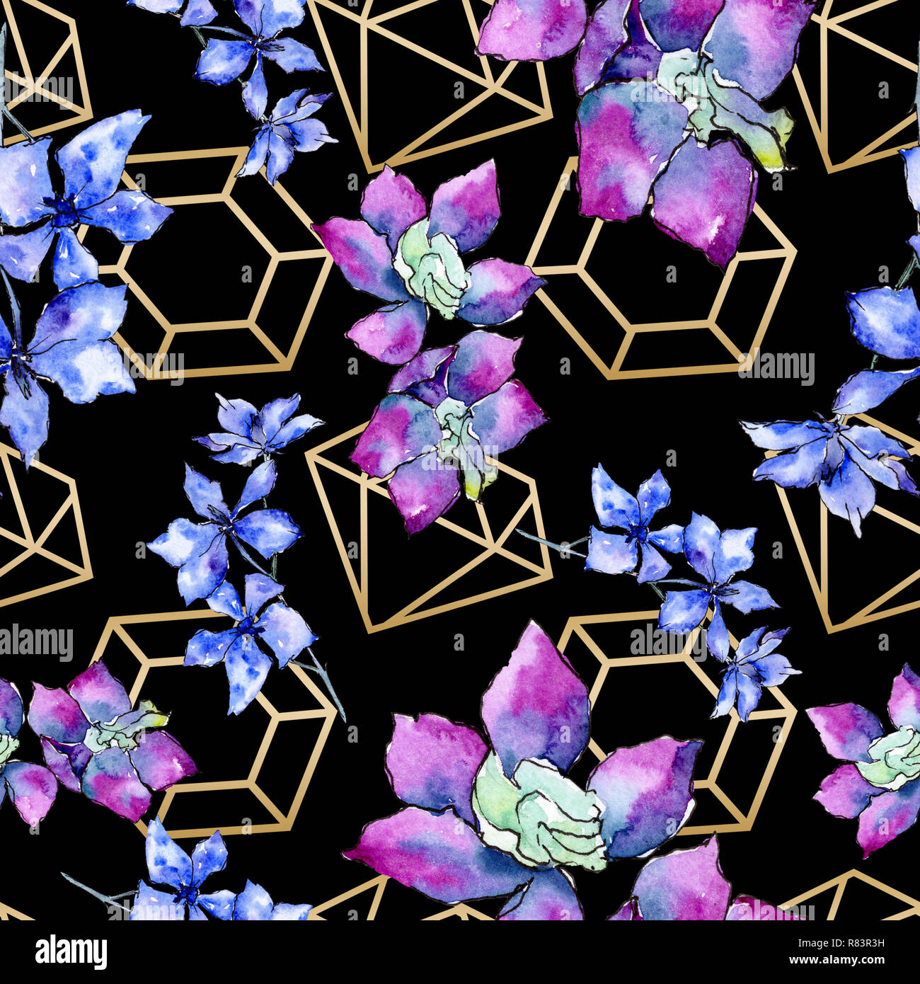 Purple Orchid Flower Floral Botanical Flower Seamless Background