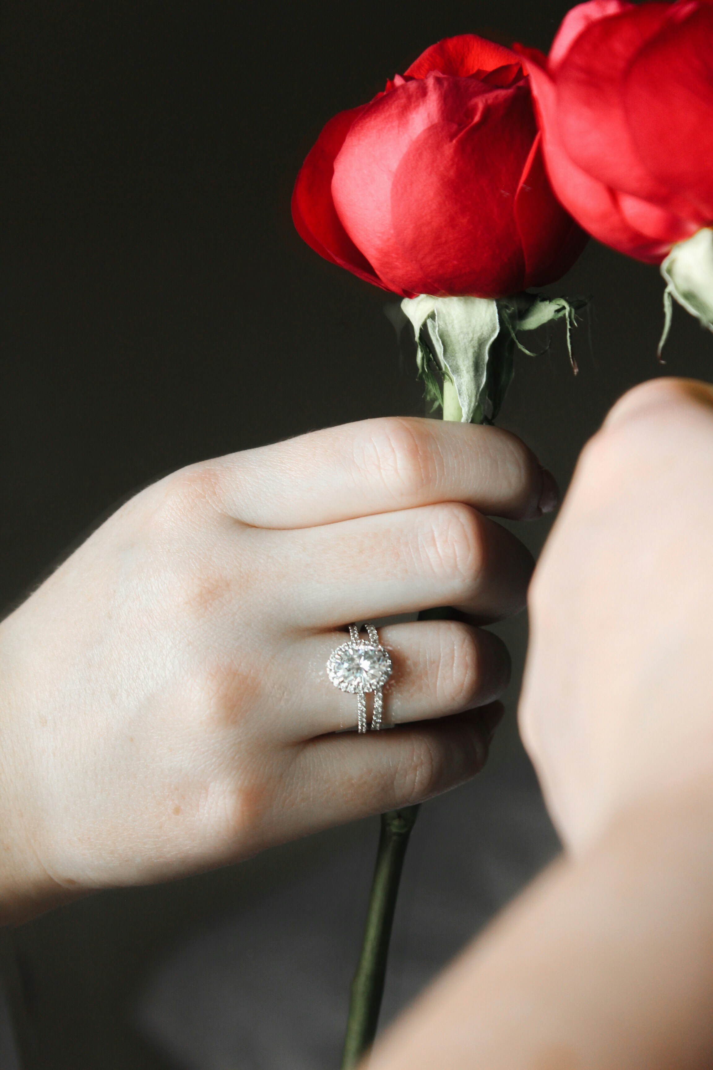 Silver Diamond Embed Ring On Red Rose Free Stock Photo