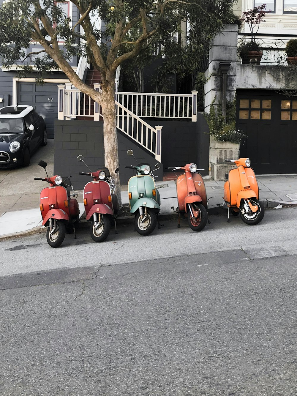 Couple Sitting On Terrace Near Railings Over Two Motor Scooter