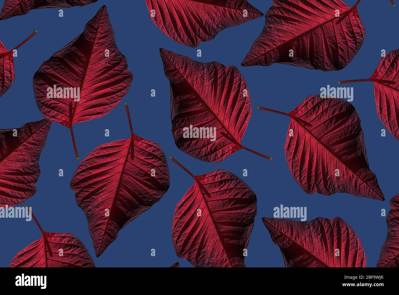 Pattern With Red Poinsettia On Blue Background Perfect For