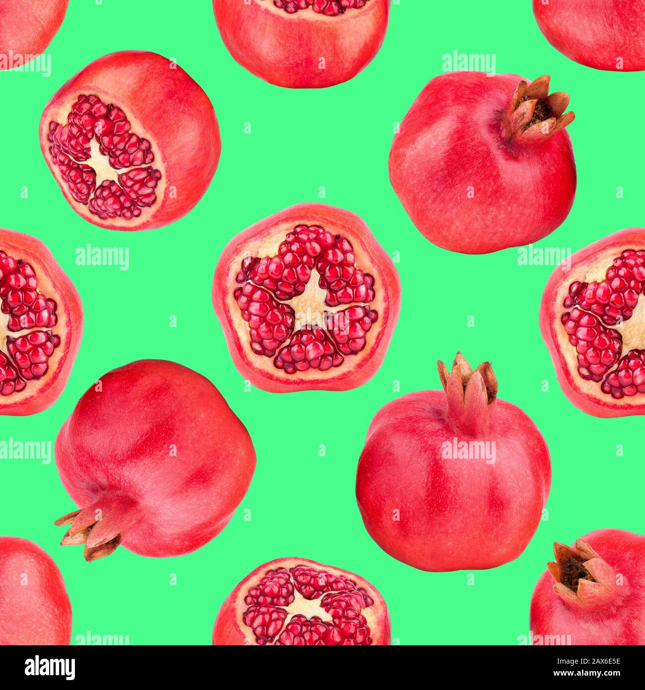 Seamless Pattern Of Red Pomegranates On Green Background Isolated