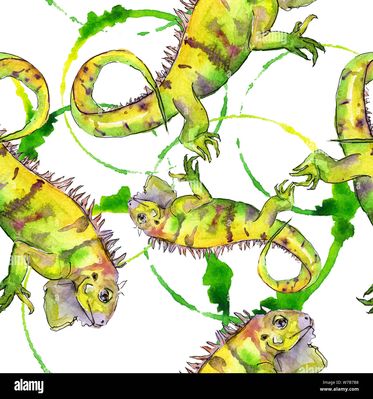 Exotic Iguana Wild Animal Watercolor Background Illustration Set