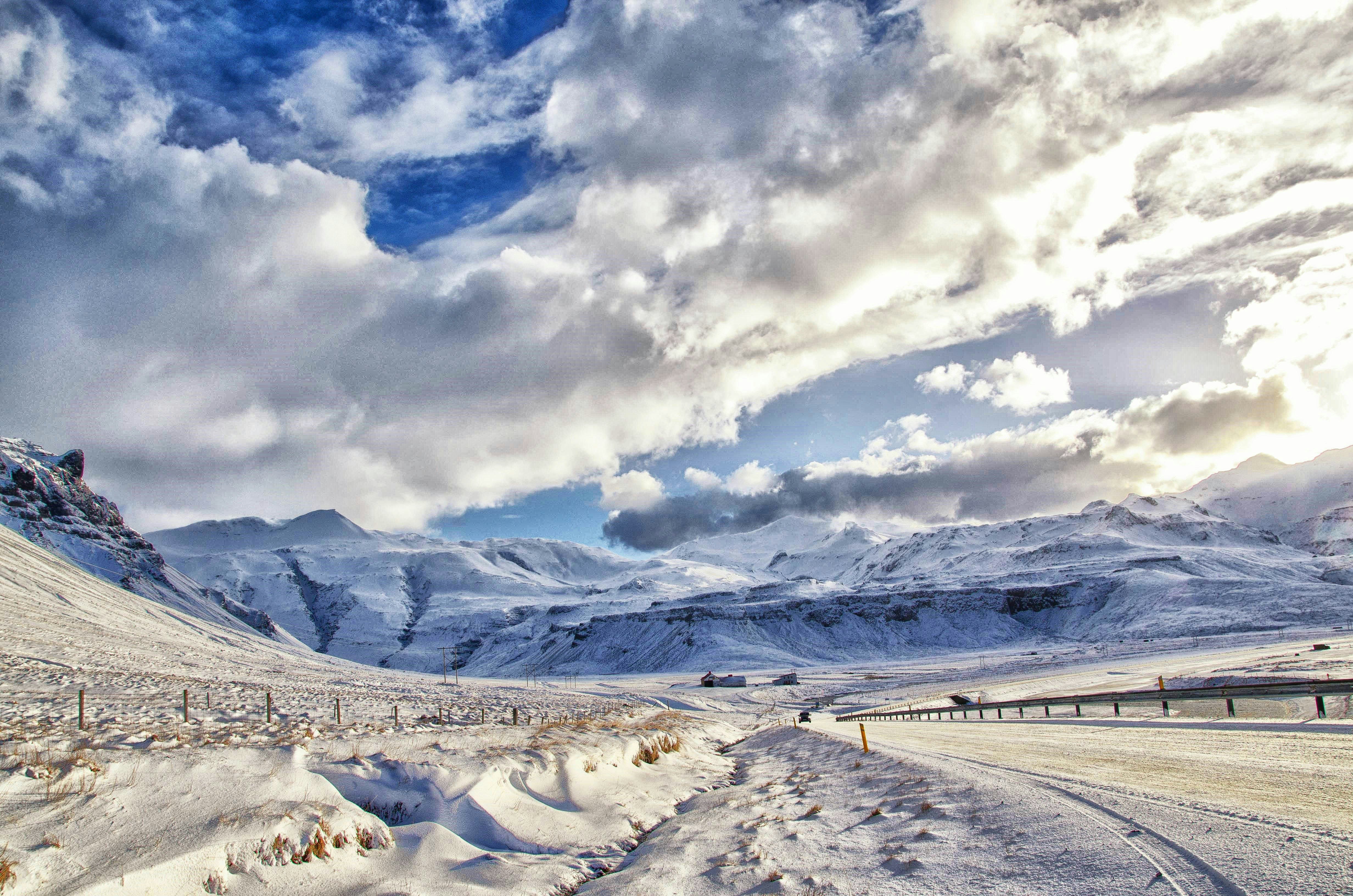 Mountains Covered Snow Road Landscape New Zealand Nature