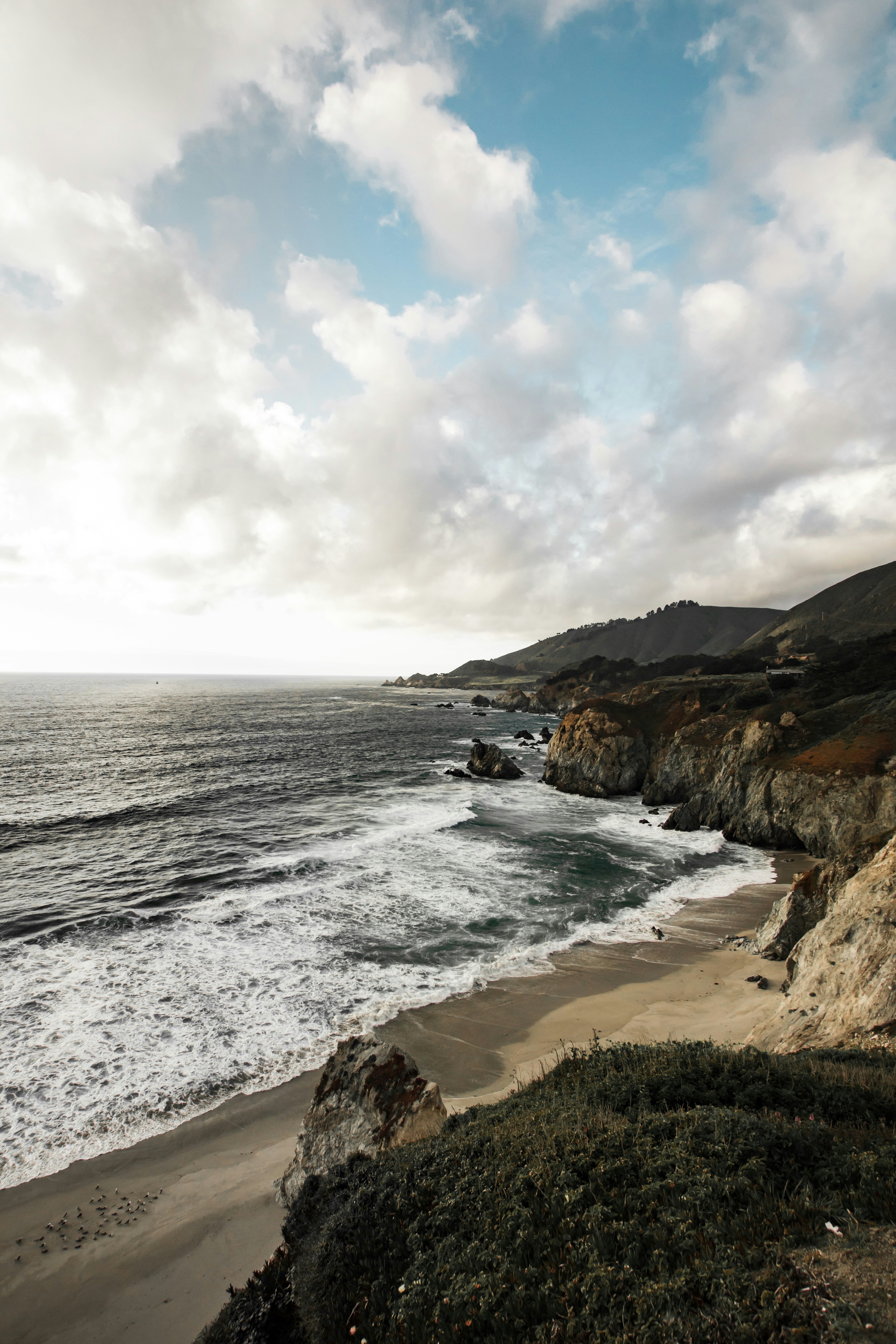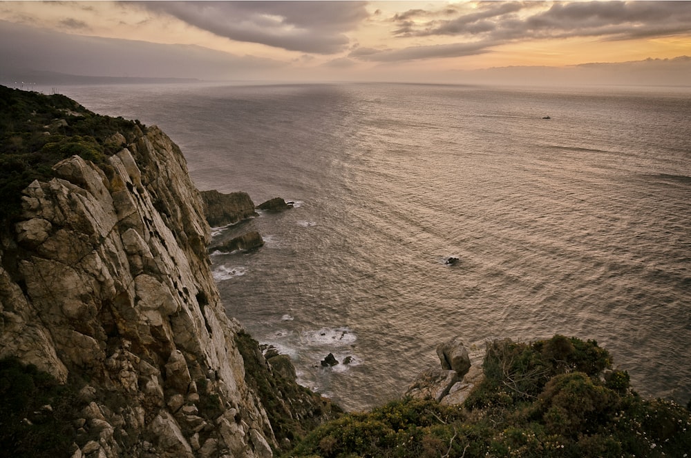 Beach Cliff Viewing Calm Sea Under White Cloudy Skies Photo Free