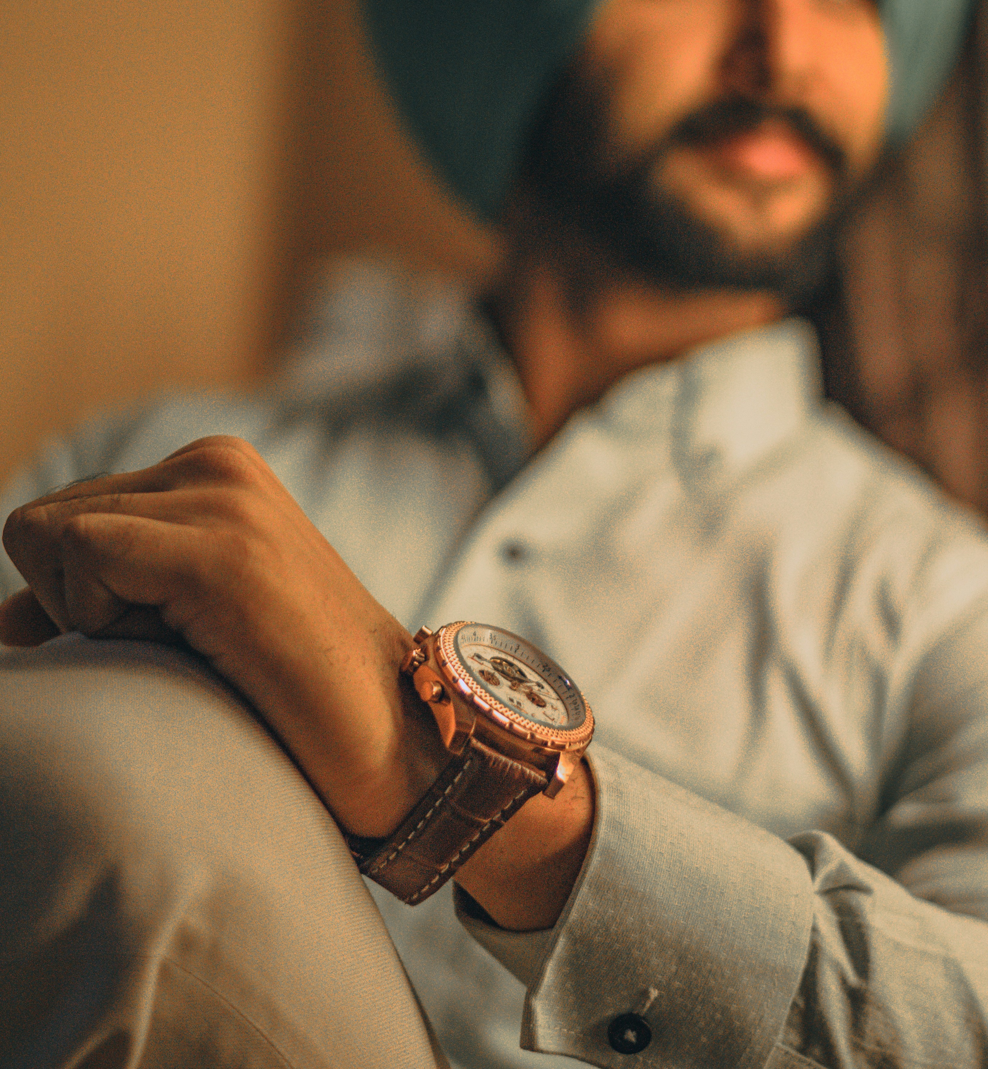 Shallow Focus Photo Of Man Wearing Round Gold Colored Chronograph