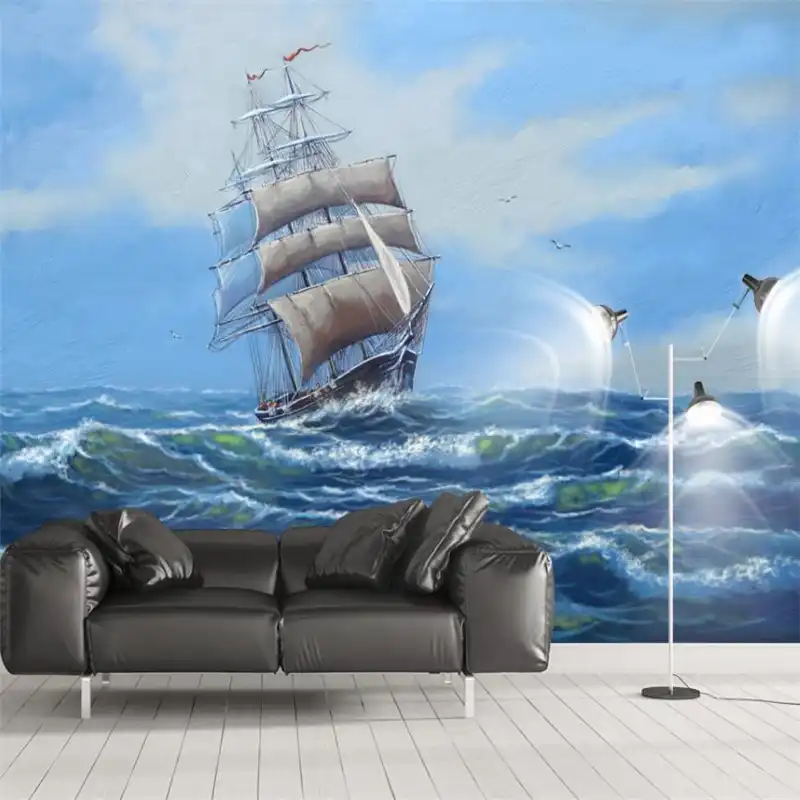 Customize European Blue Sky White Clouds Sea Sailing Background