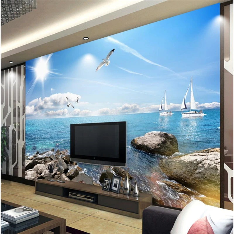 3d Blue Sky Sea View Custom Wallpaper For Walls Sandy Beach Wall