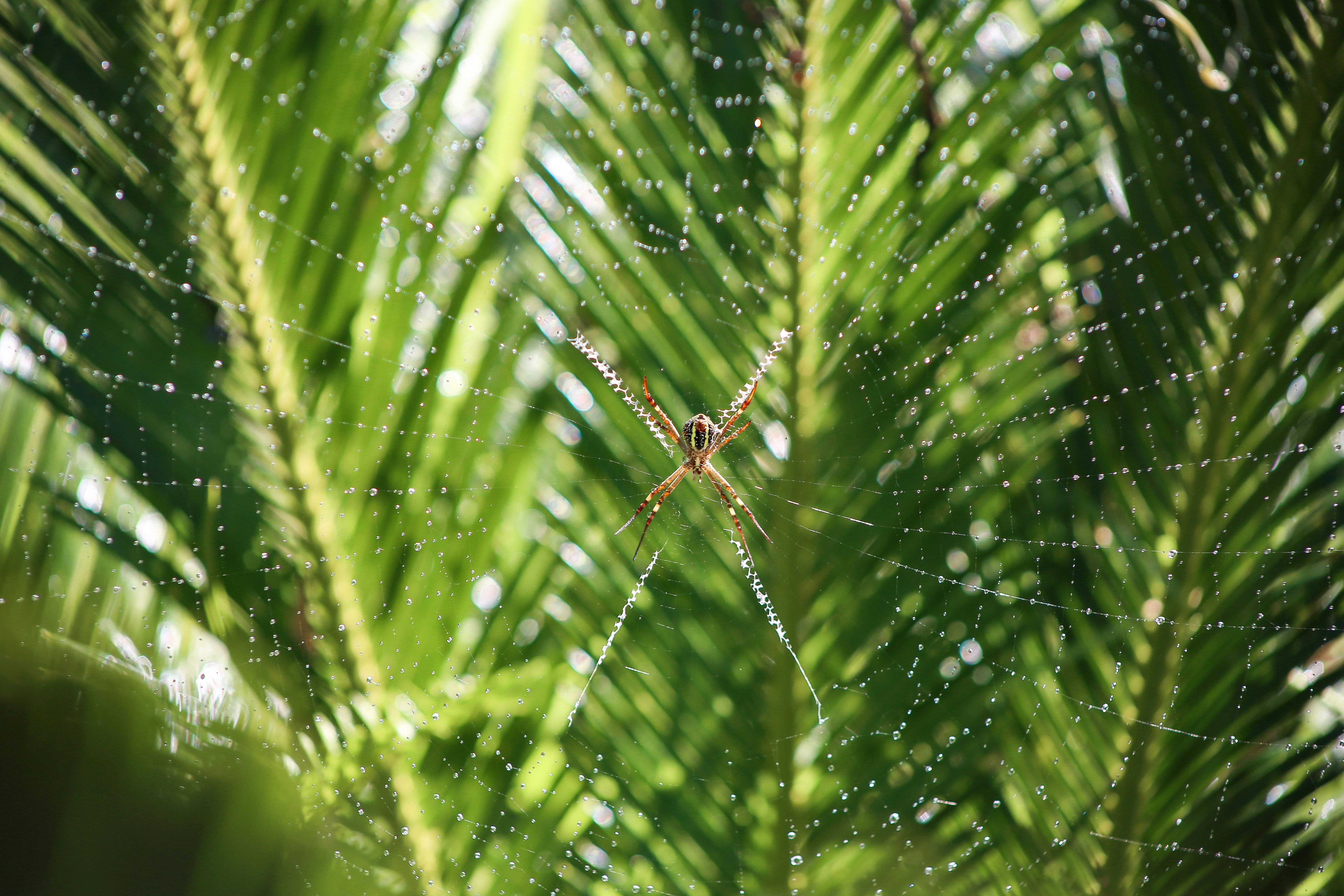 Hd Wallpaper A Spider S Web Green Leaf The Leaves Spider Web