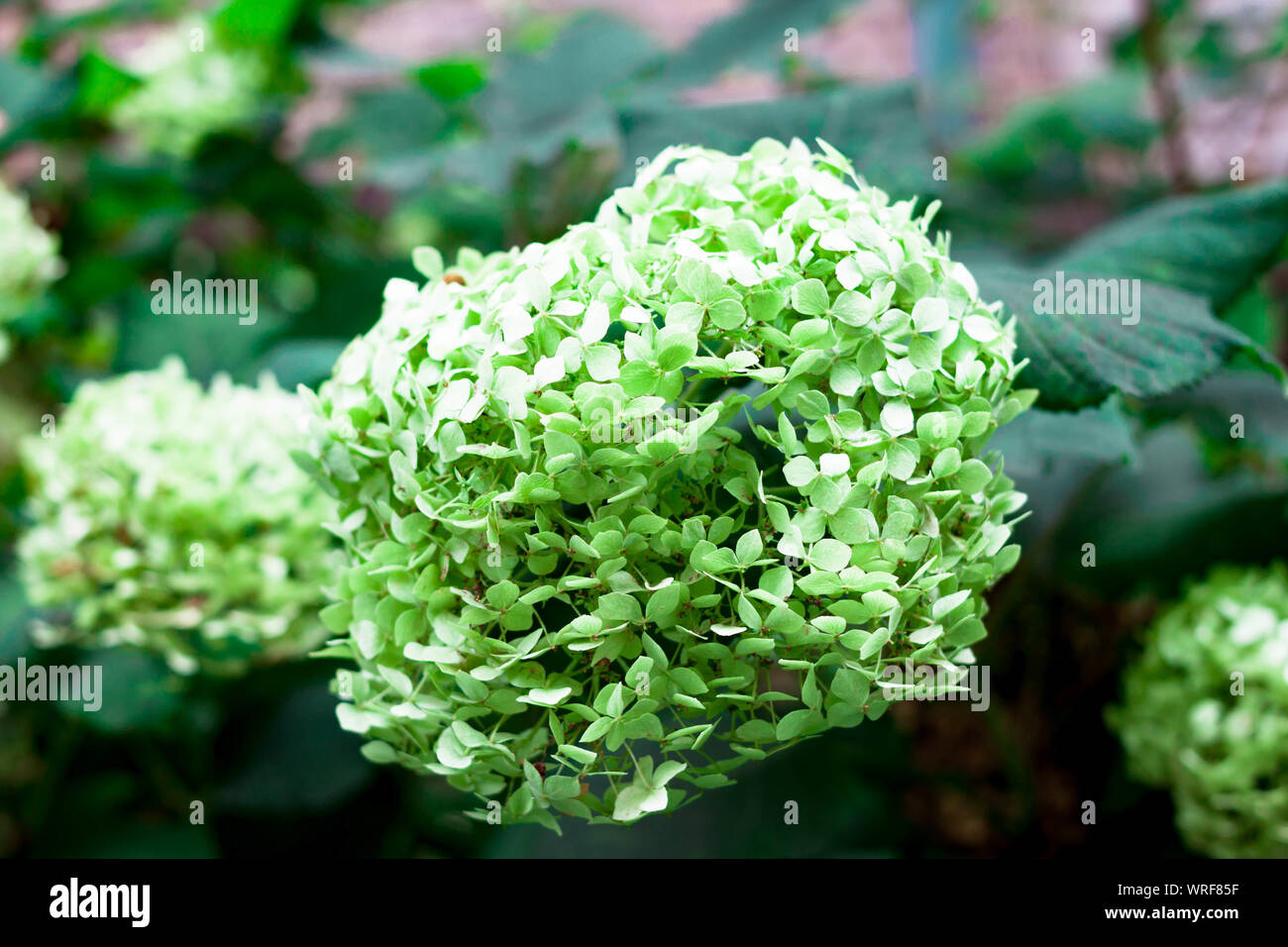 Blooming Flowers Cluster Inflorescence Of Green Hortensia