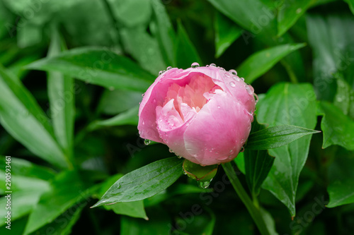 Beautiful Close Up Of Pink Peony With Big Water Drops Blooming