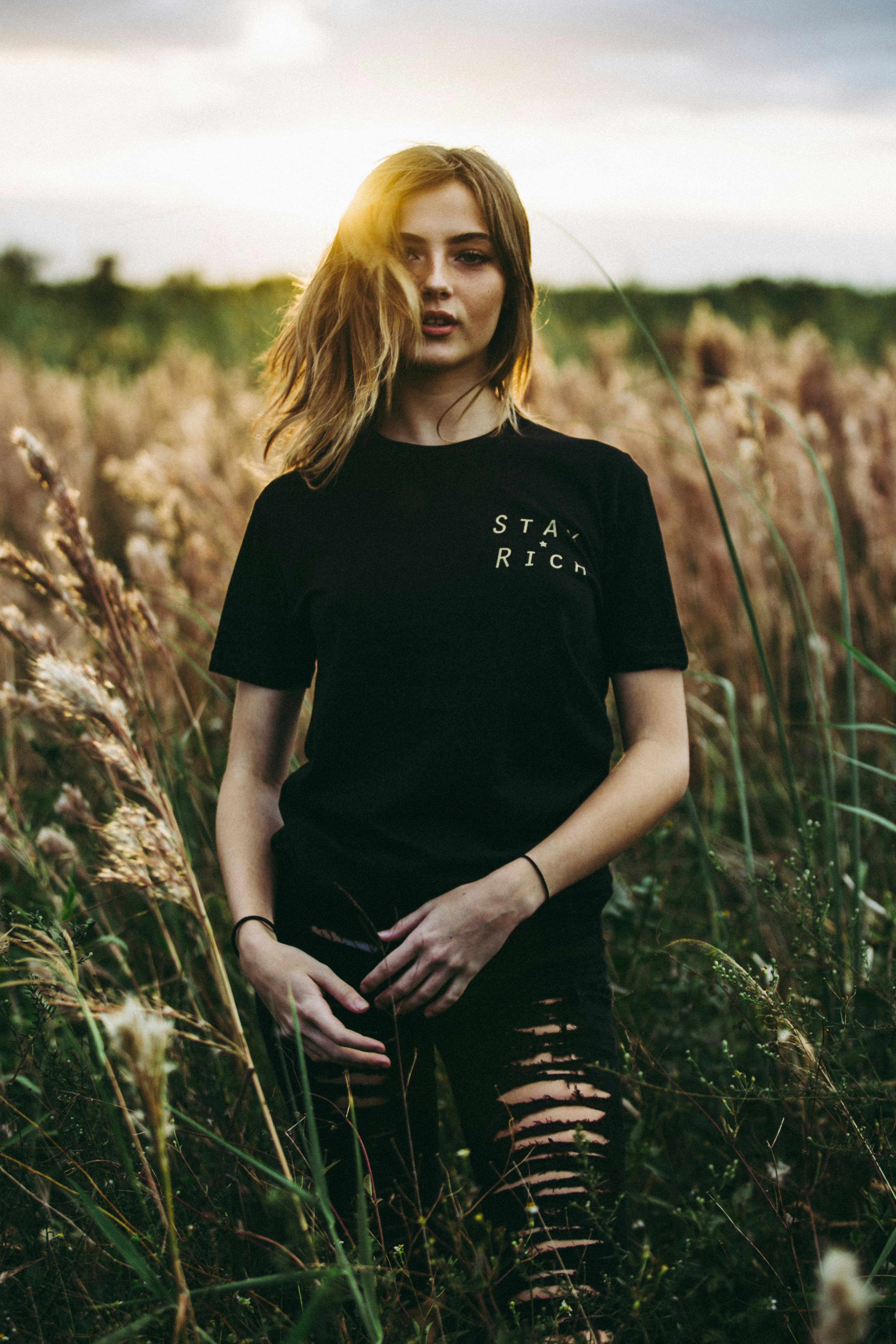 Selective Focus Photography Of Black Crew Neck T Shirt And