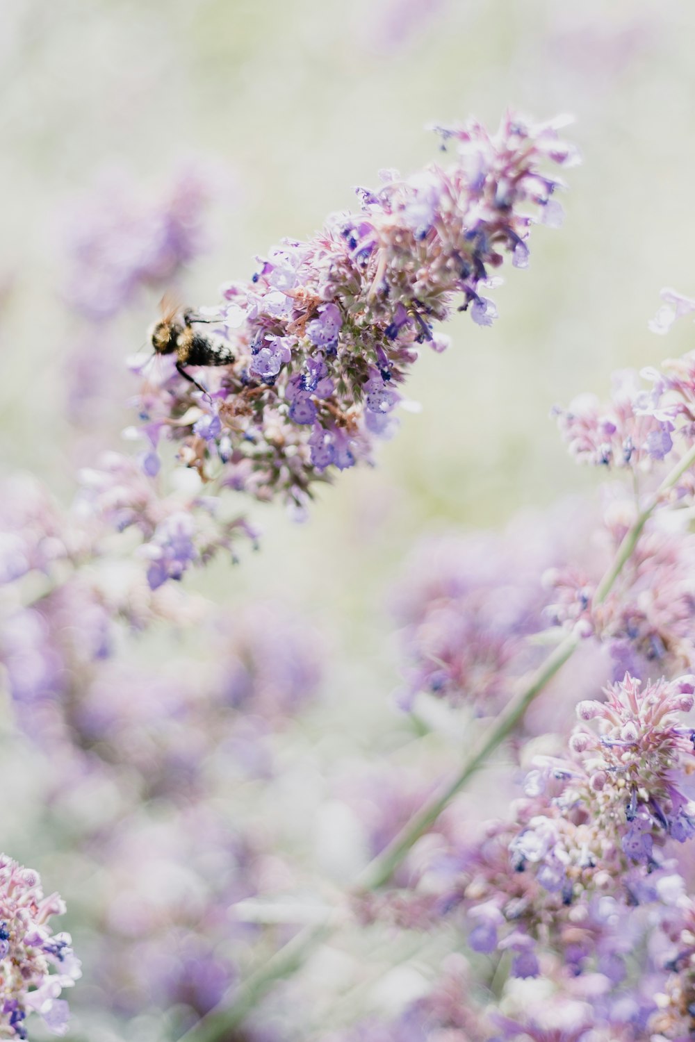 Selective Focus Photography Of Bee On Purple Petaled Flower Honey