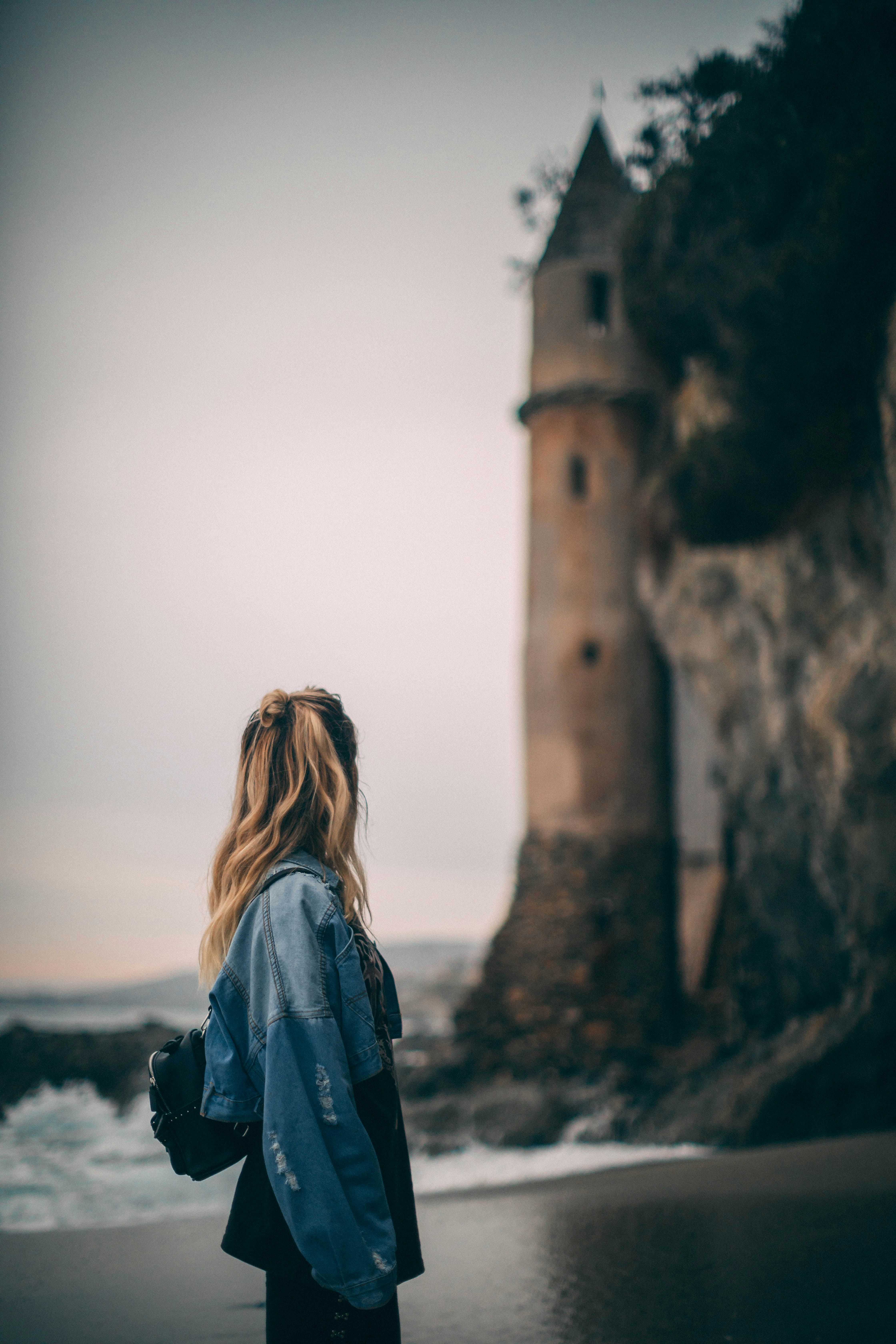 Selective Focus Photography Of Woman On Seashore Near Lighthouse