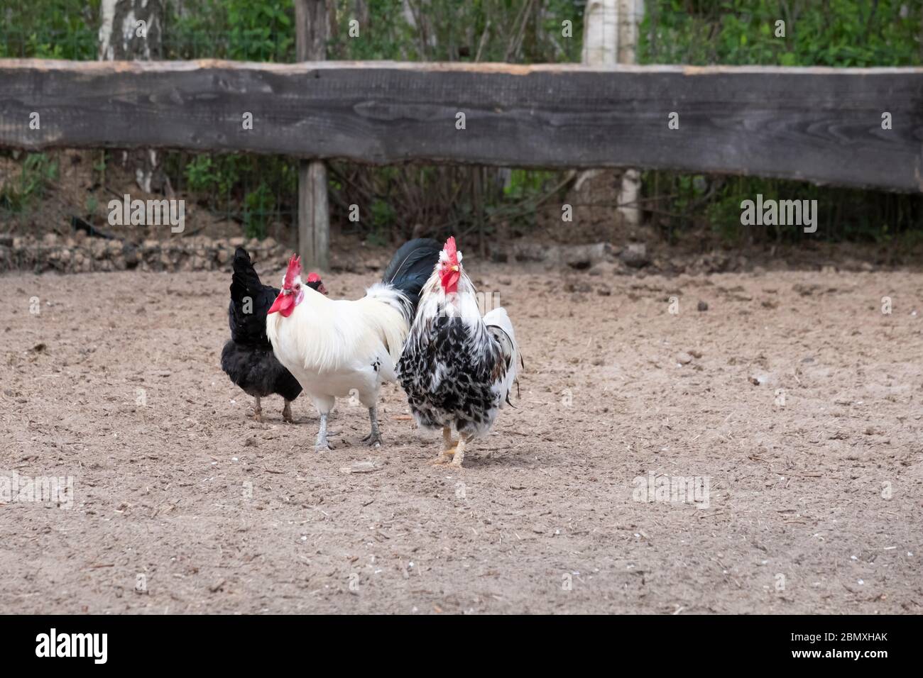 Two Chickens On Free Range Poultry Farm Selective Focus Stock