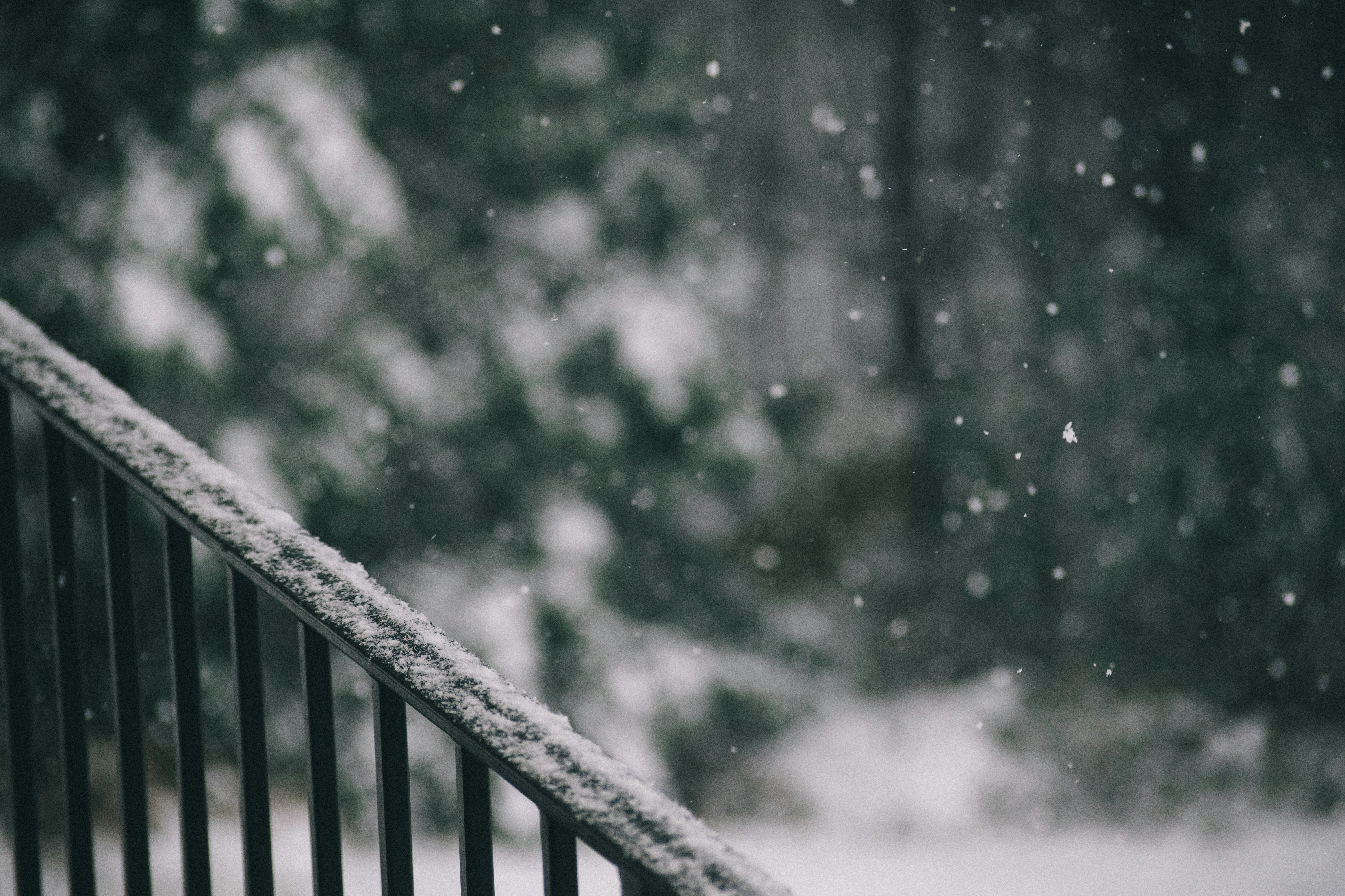 Selective Focus Photography Of Falling Snow On Barrier Photo
