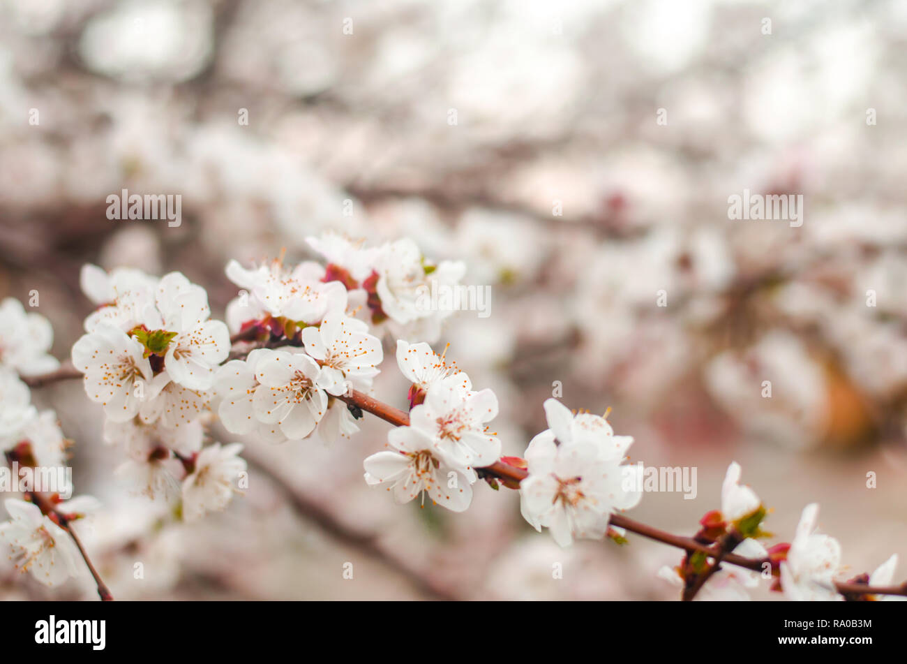 White Apricot Blossom Buds Flowering Tree In April The Concept Of