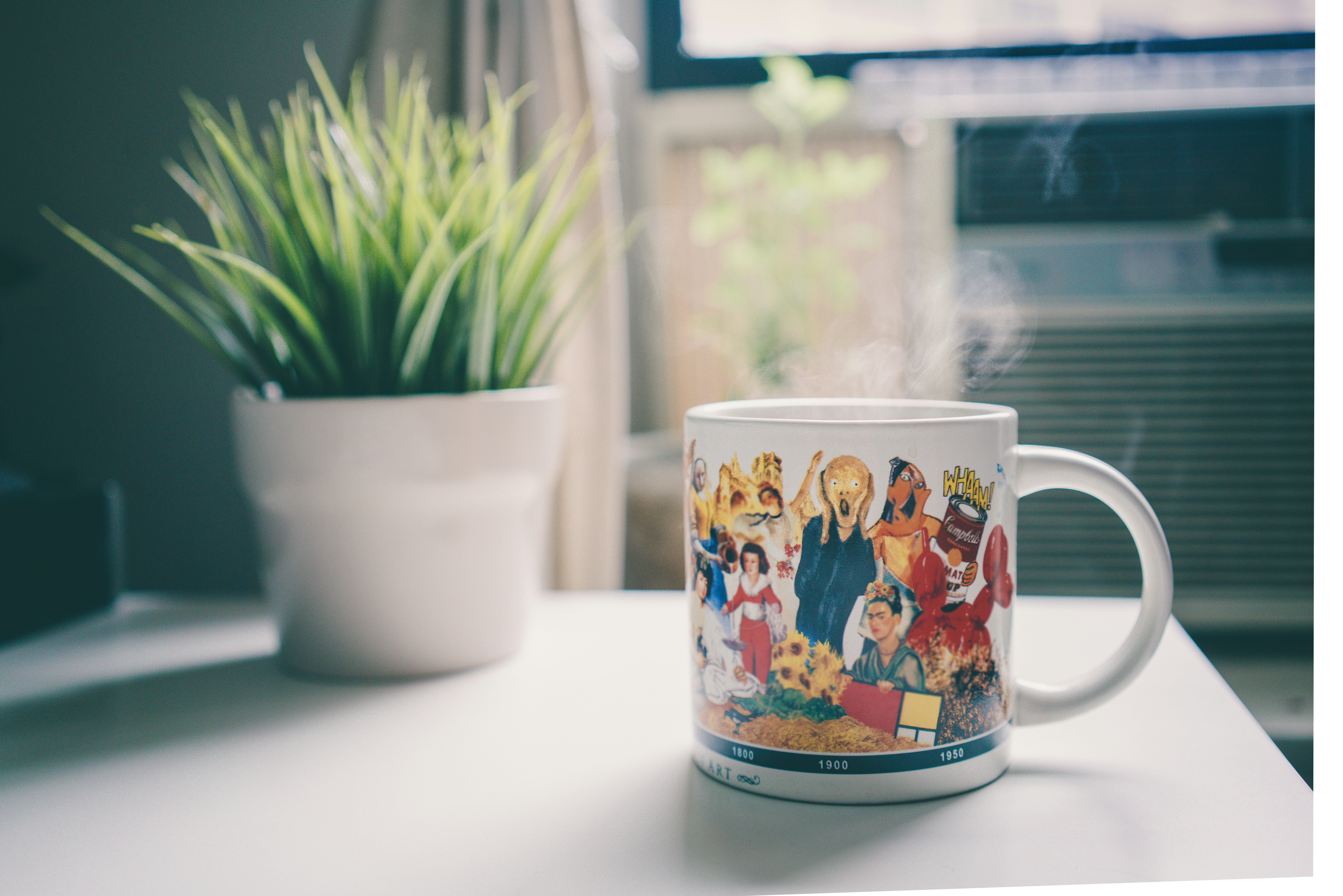 Macbook On Table Beside Mug In Shallow Focus Photography Wallpaper
