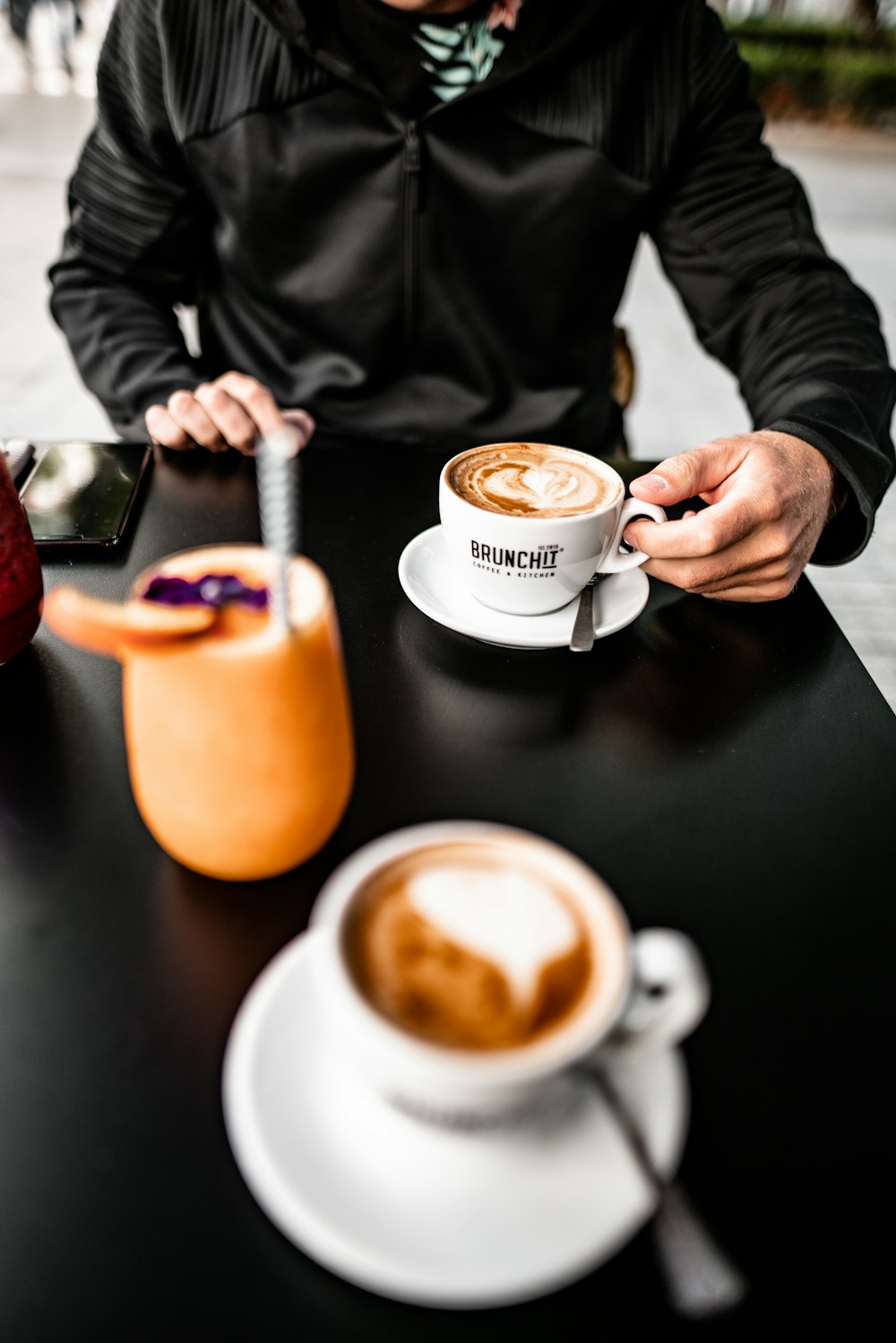 Shallow Focus Photo Person Holding Black Ceramic Mug Photo Free