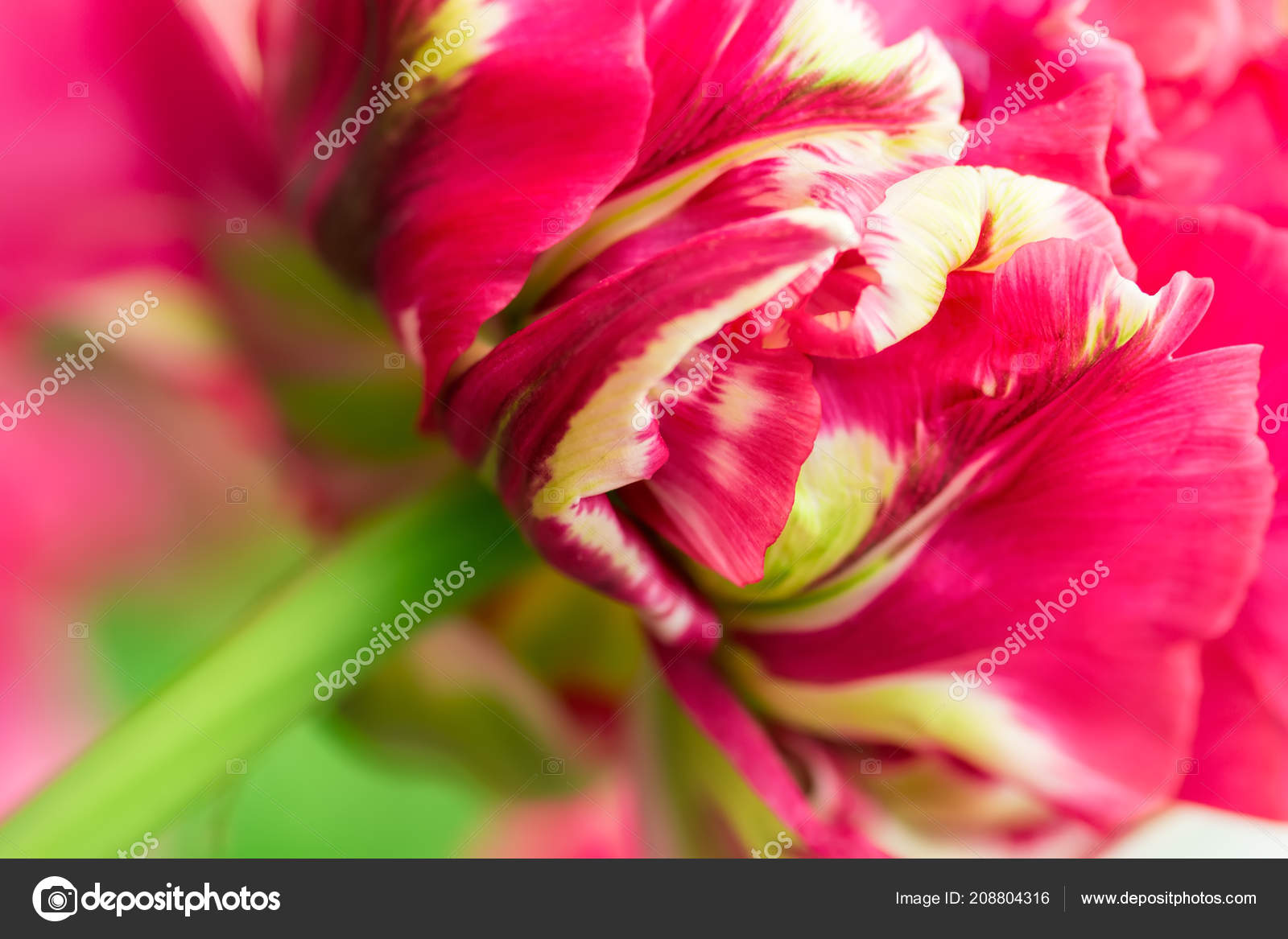 Saturated Magenta Yellow Colored Tulip Flower Close Using Shallow