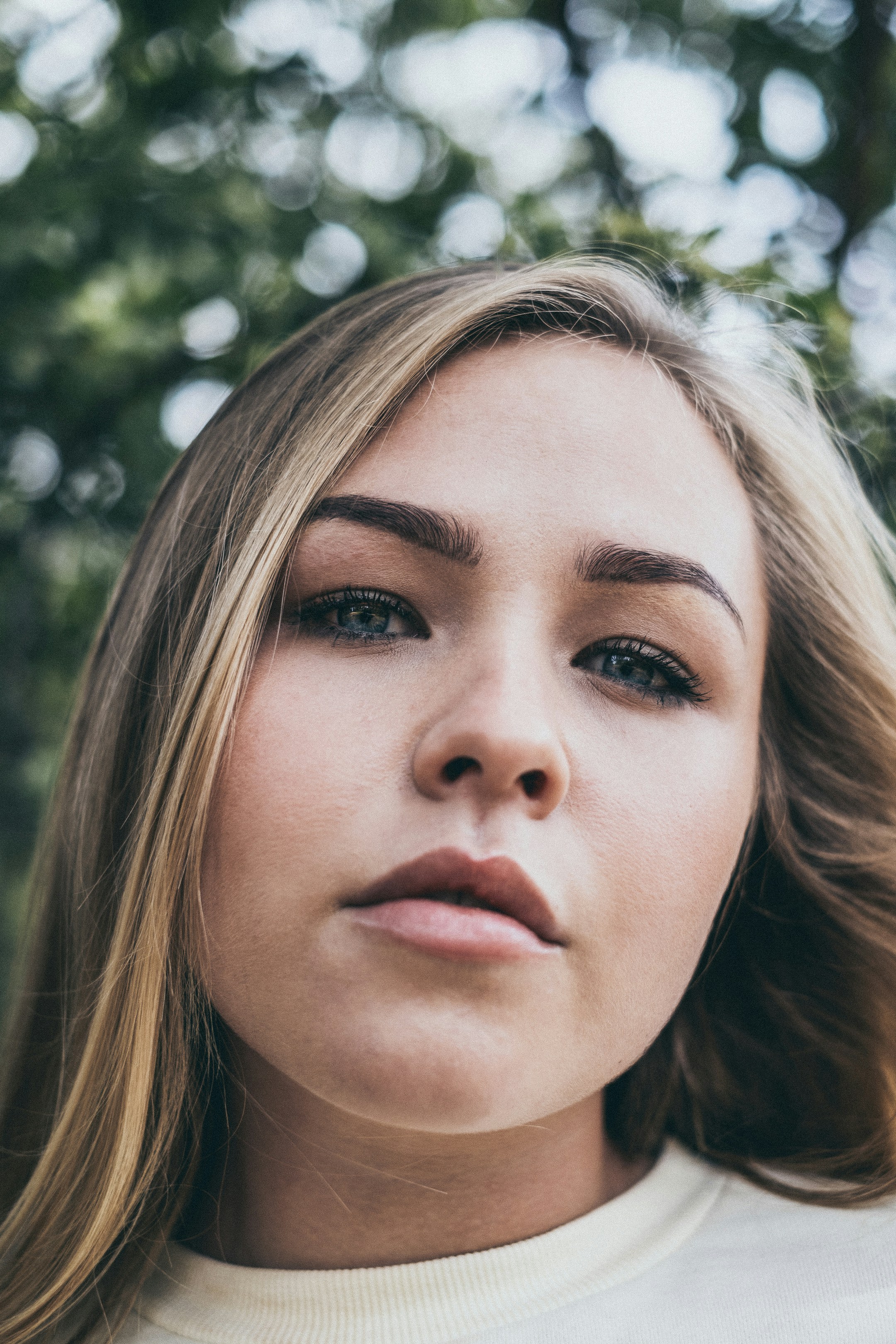 Shallow Focus Photo Of Woman In White Crew Neck Shirt Photo Free