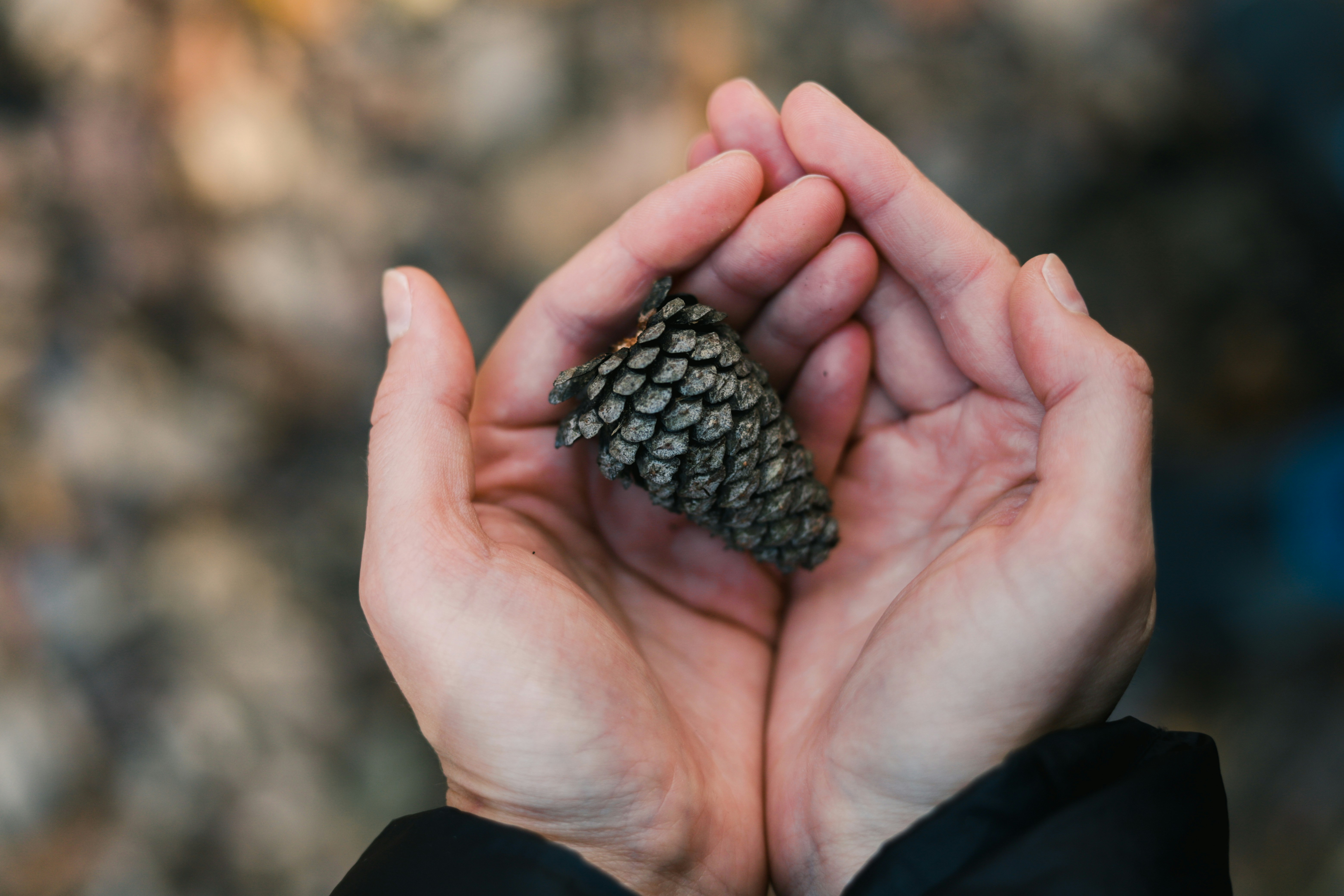 Shallow Focus Photography Unknown Person Holding Pine Cone Photo