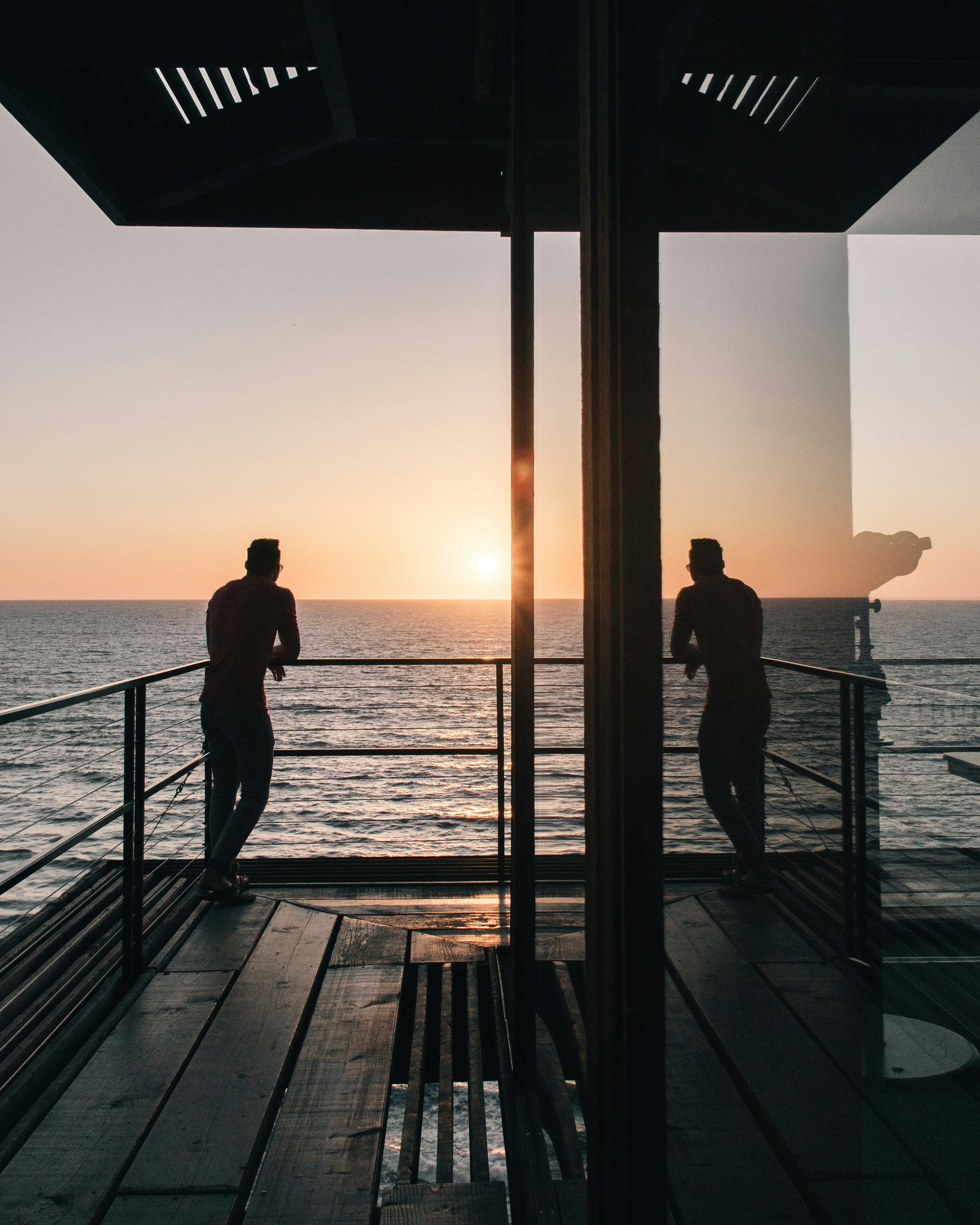 Silhouette Of Man Standing On Gray Stainless Steel Railing Looking