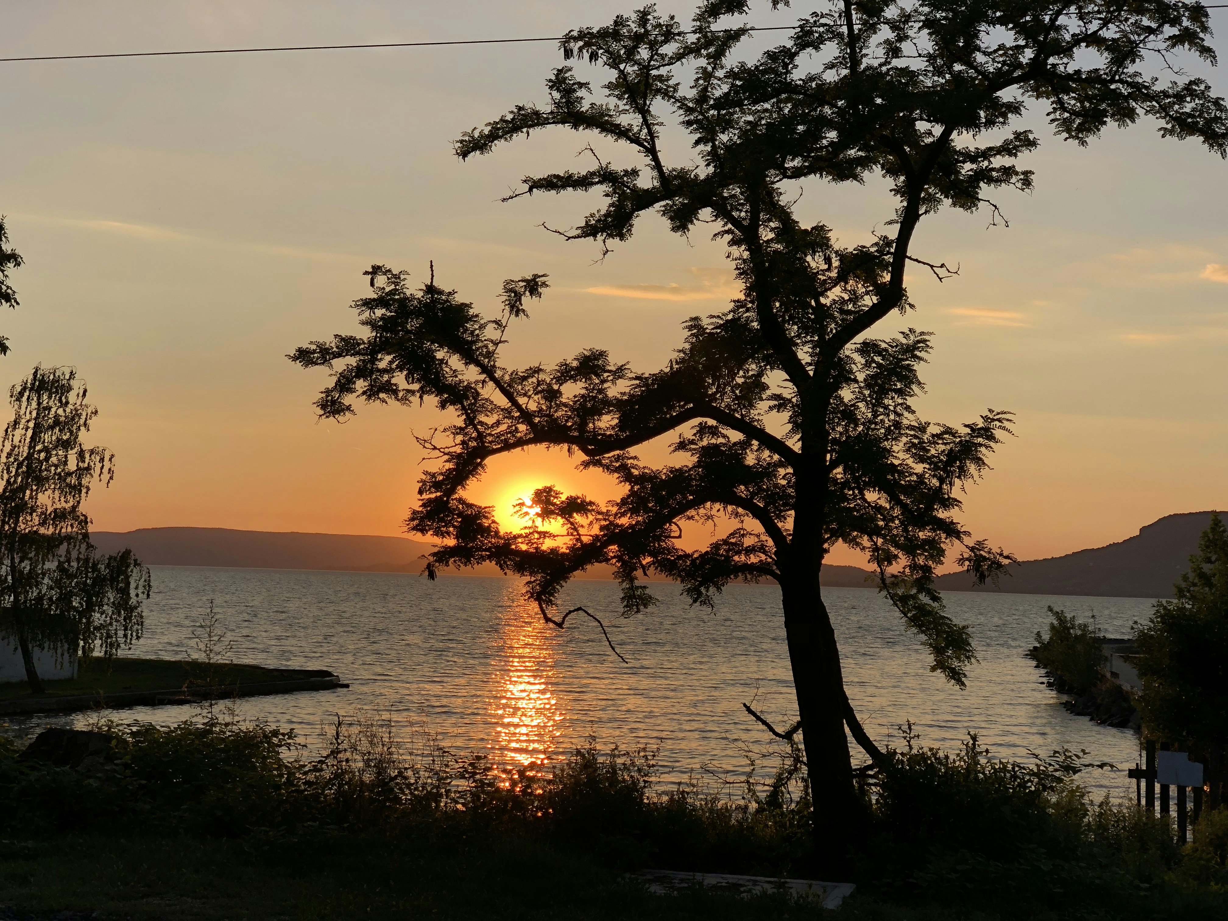 Silhouette Of Tree Near Body Of Water During Sunset Photo Free