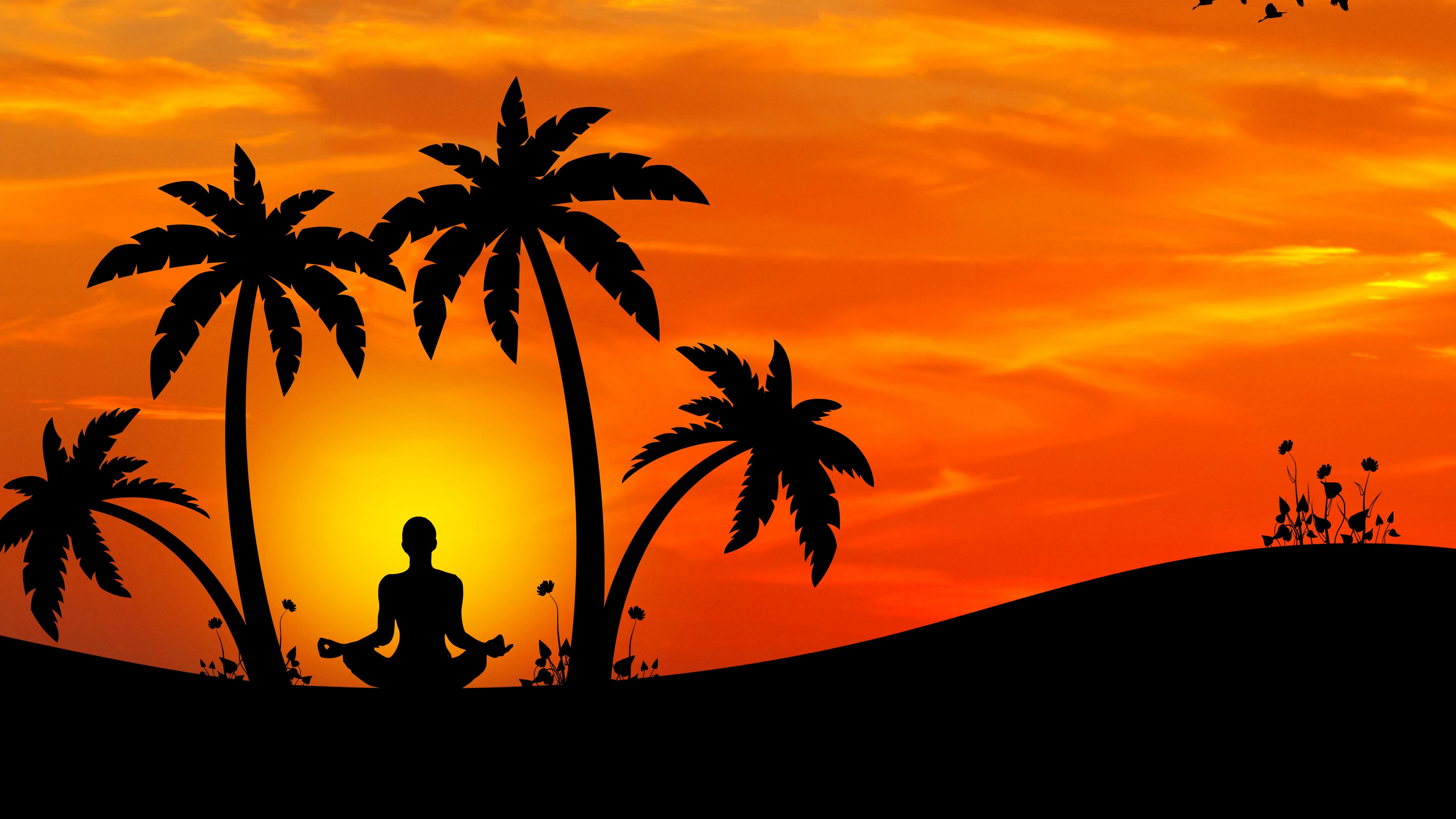 Wallpaper Meditation Yoga Silhouette Palm Trees Coconut Tree