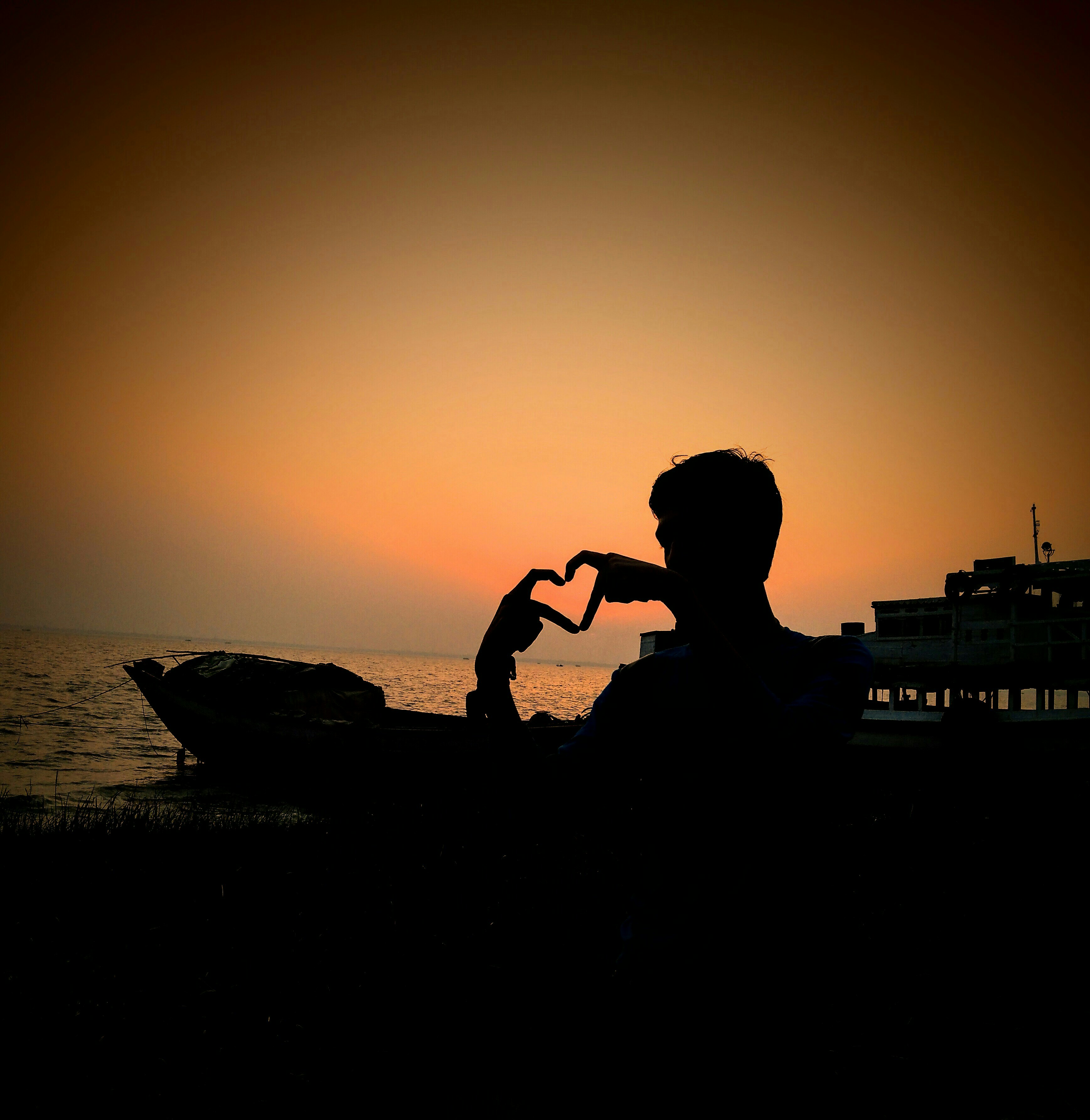 Silhouette Photography Of Man Making Heart Hand Sign Photo Free