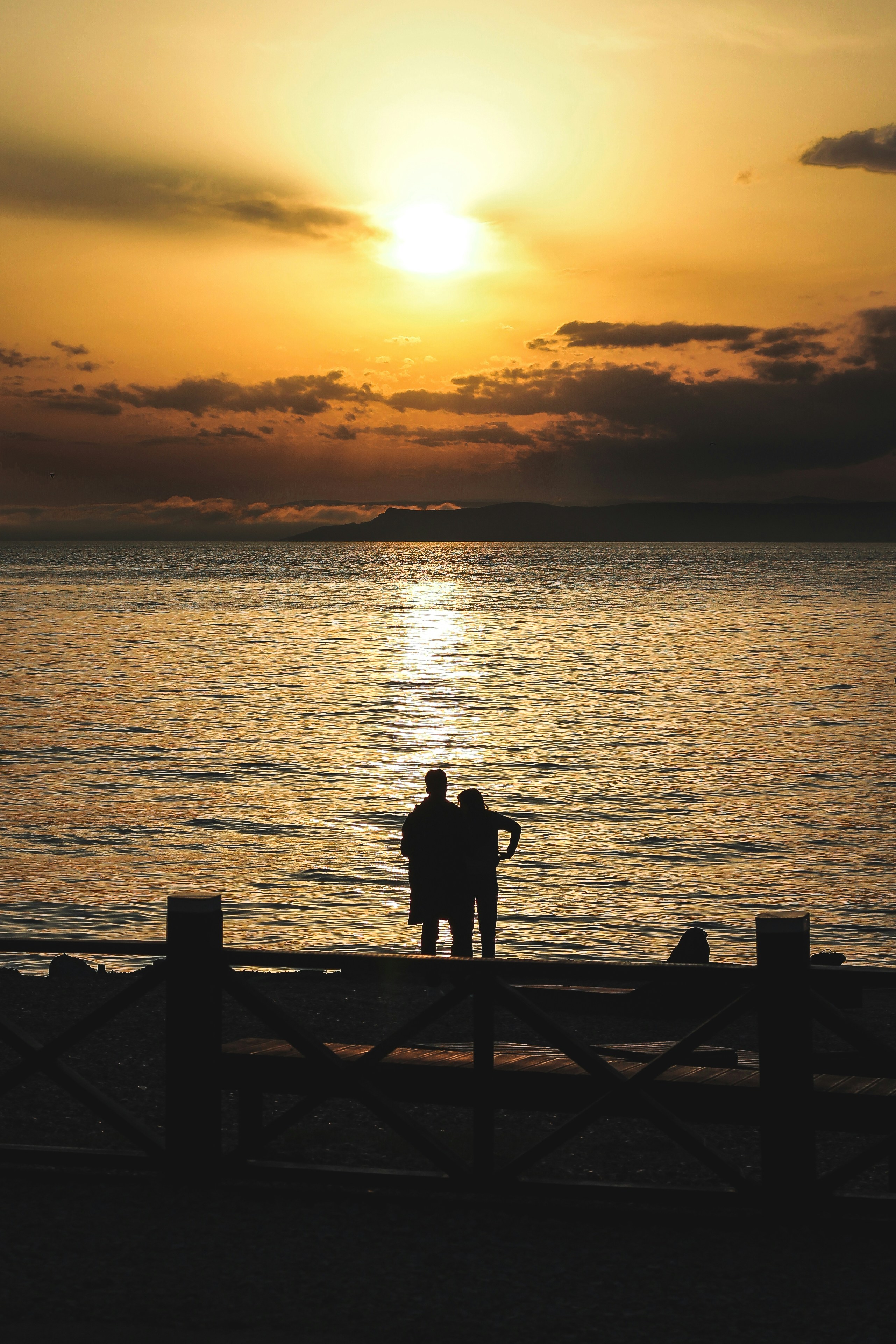 Silhouette Of People Standing On Beach Dock During Sunset Pikrepo