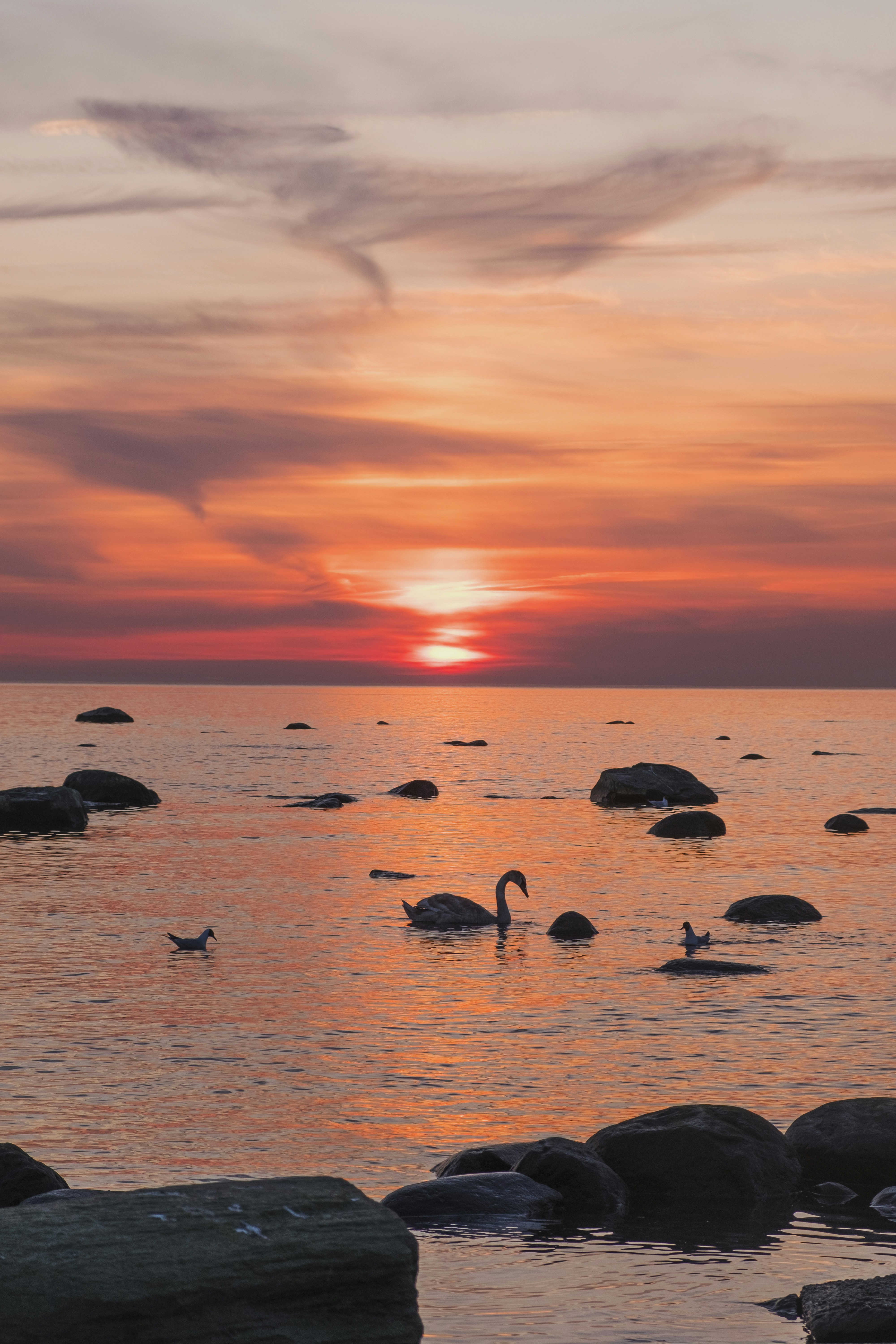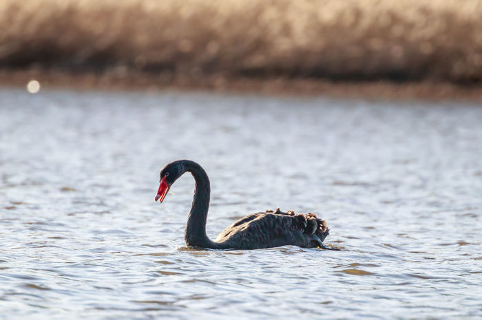 Swan In Body Of Water During Golden Hour Photo Free Sunset Image