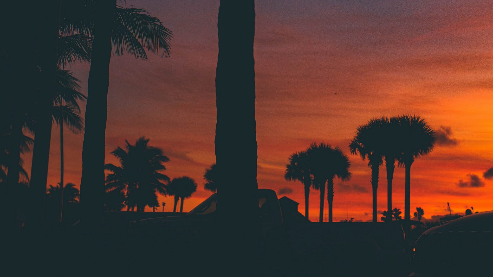Wallpaper Sunset Palm Trees Silhouette