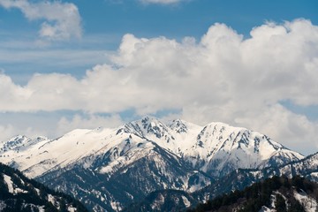 Free Photo Green Trees Snowy Mountains During Blue Sunny Cloudy