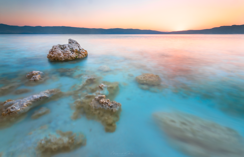 Hd Wallpaper Gray Rocks On Body Of Water Sunset Sea Landscape