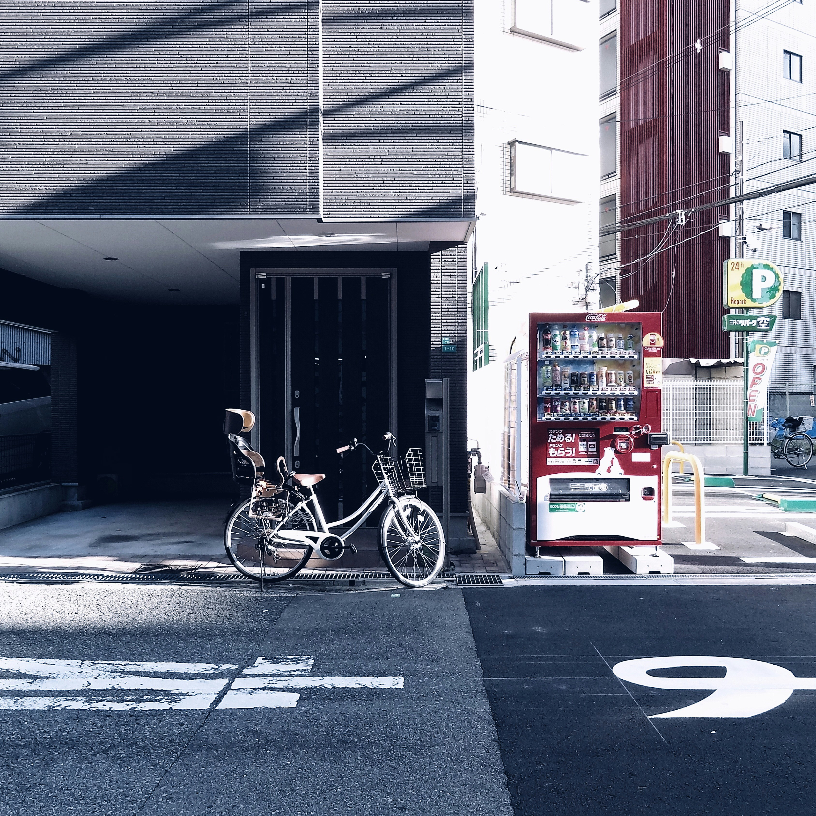 View Photography Of Gray Bicycle Parked Near Building Beside