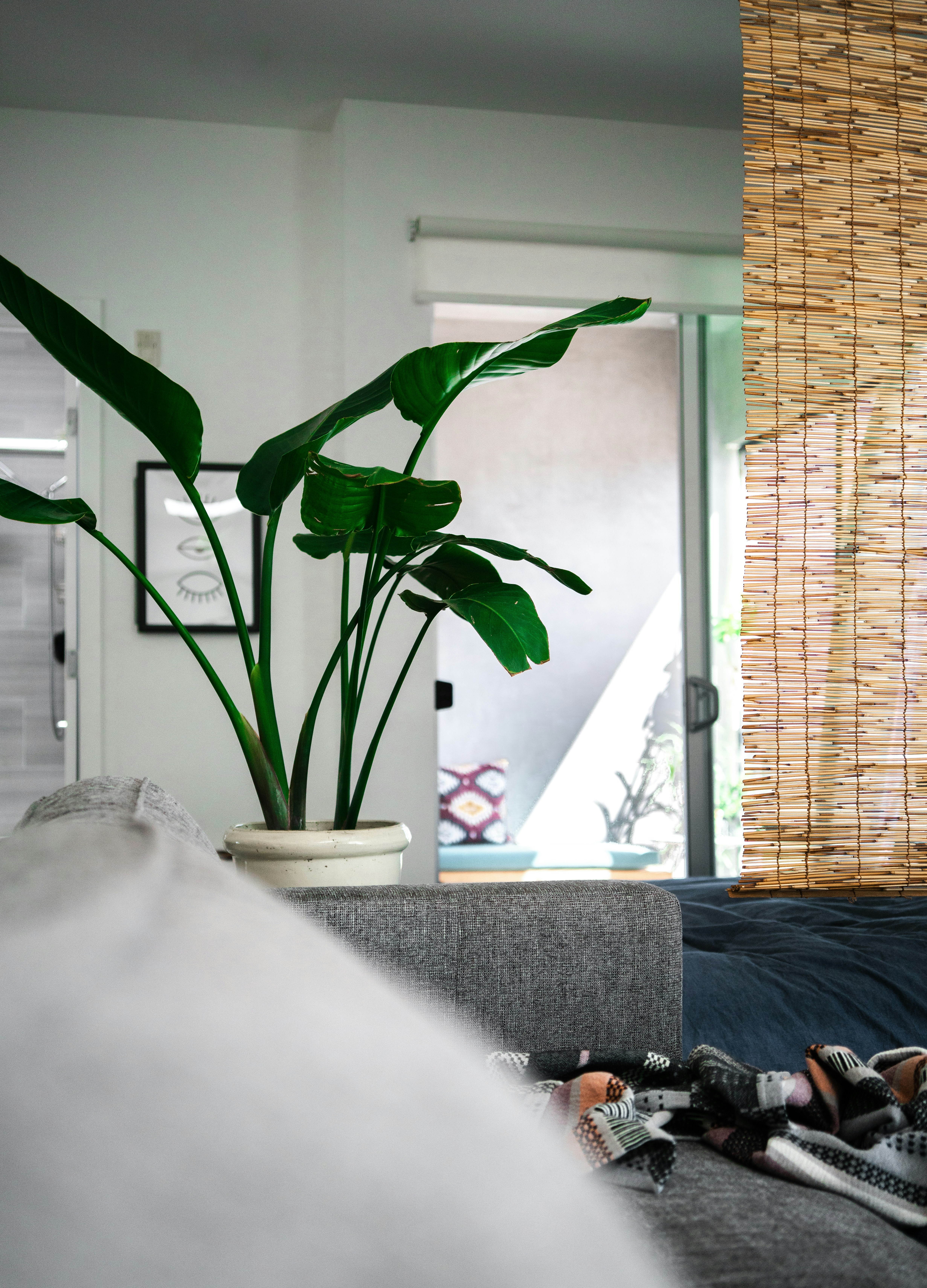 Tilt Shift Lens Photography Of Green Lily Centerpiece Behind Armrest Of Gray Sofa In A Well Lit Room During Daytime Photo Free Jar Image On Unsplash