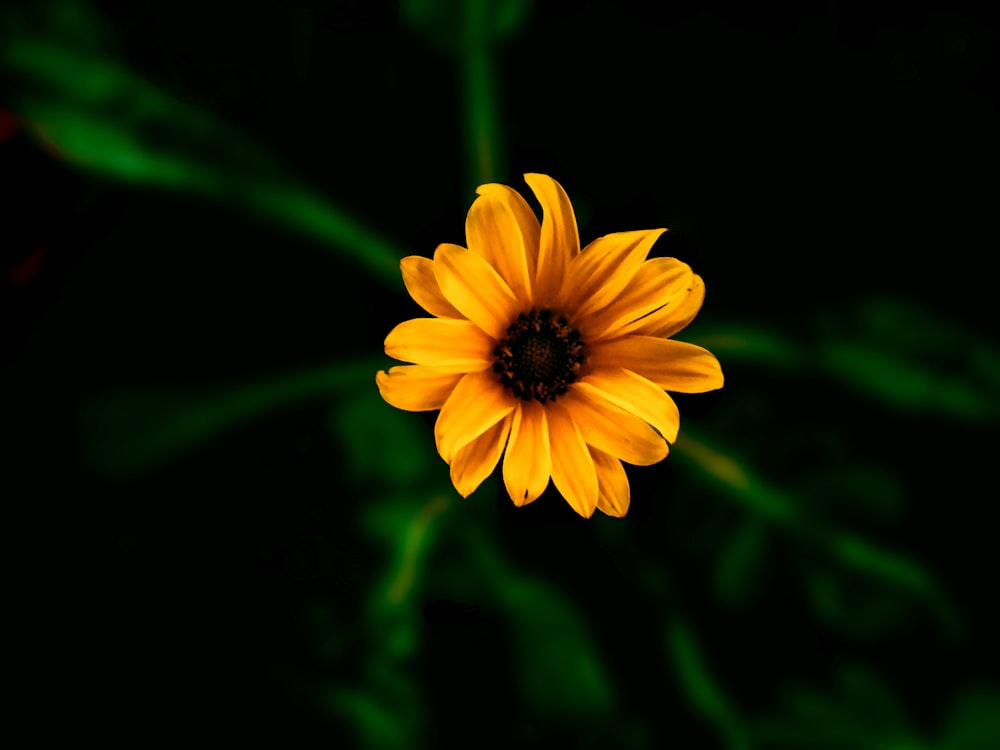 Aerial Photo Bright Yellow Blossom Flower Top View Of Green