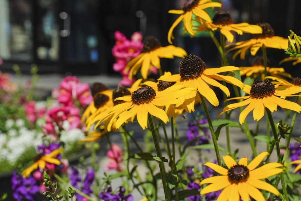 Yellow And Red Flowers In Tilt Shift Lens Pikrepo