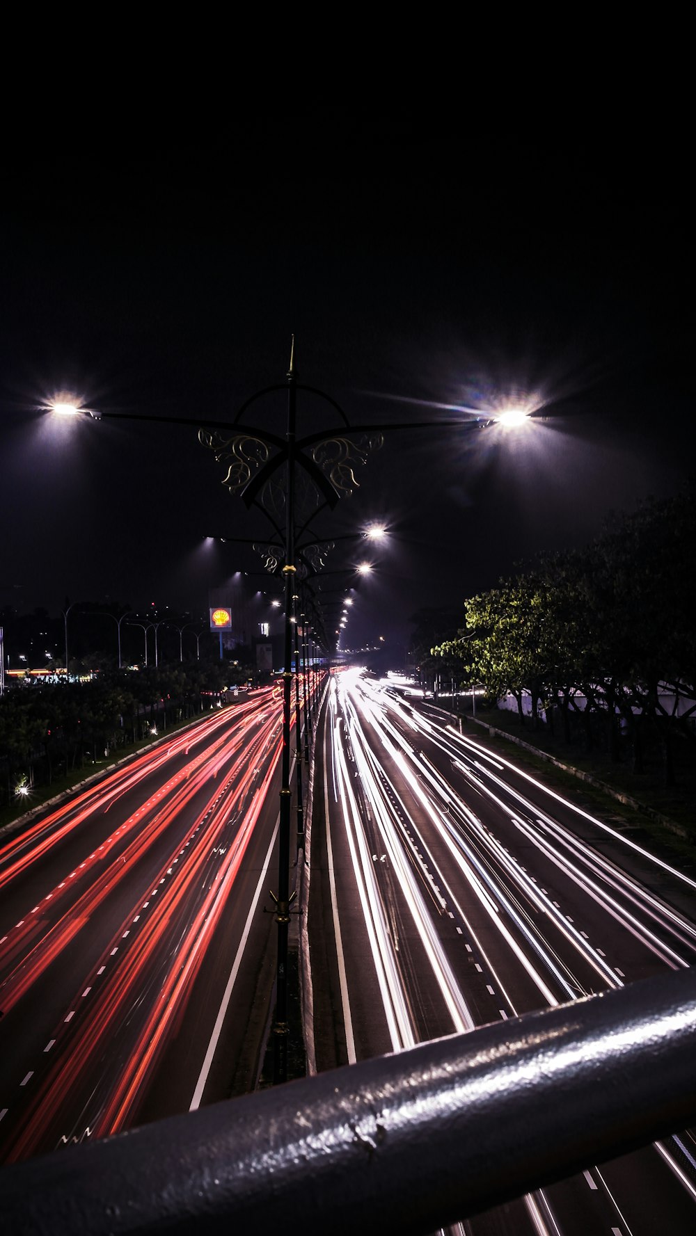 Highway Long Exposure Light Trails Time Lapse Photography Of