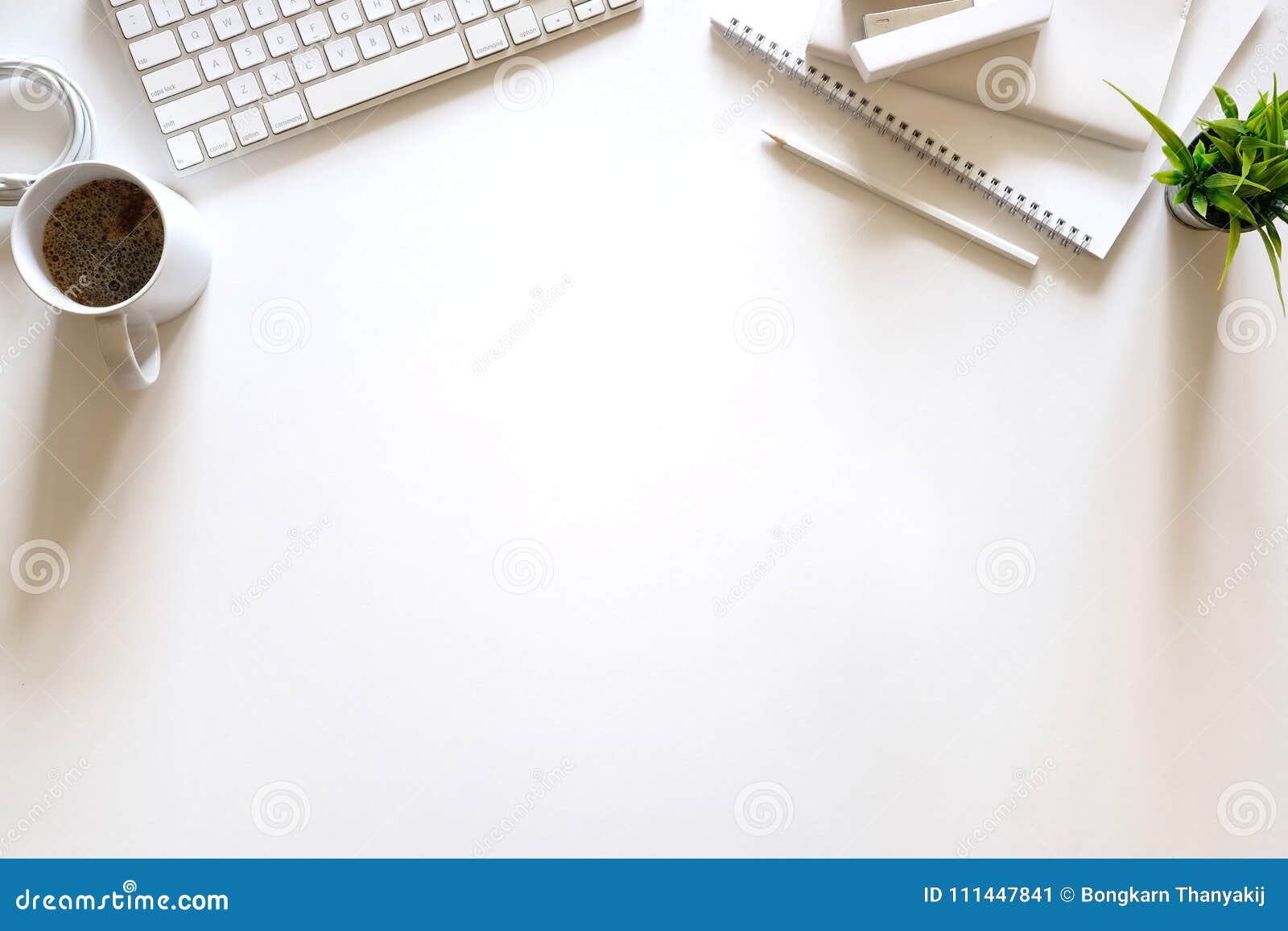 Work Desktop Top View Office Desk Table Copy Space Flat Vector