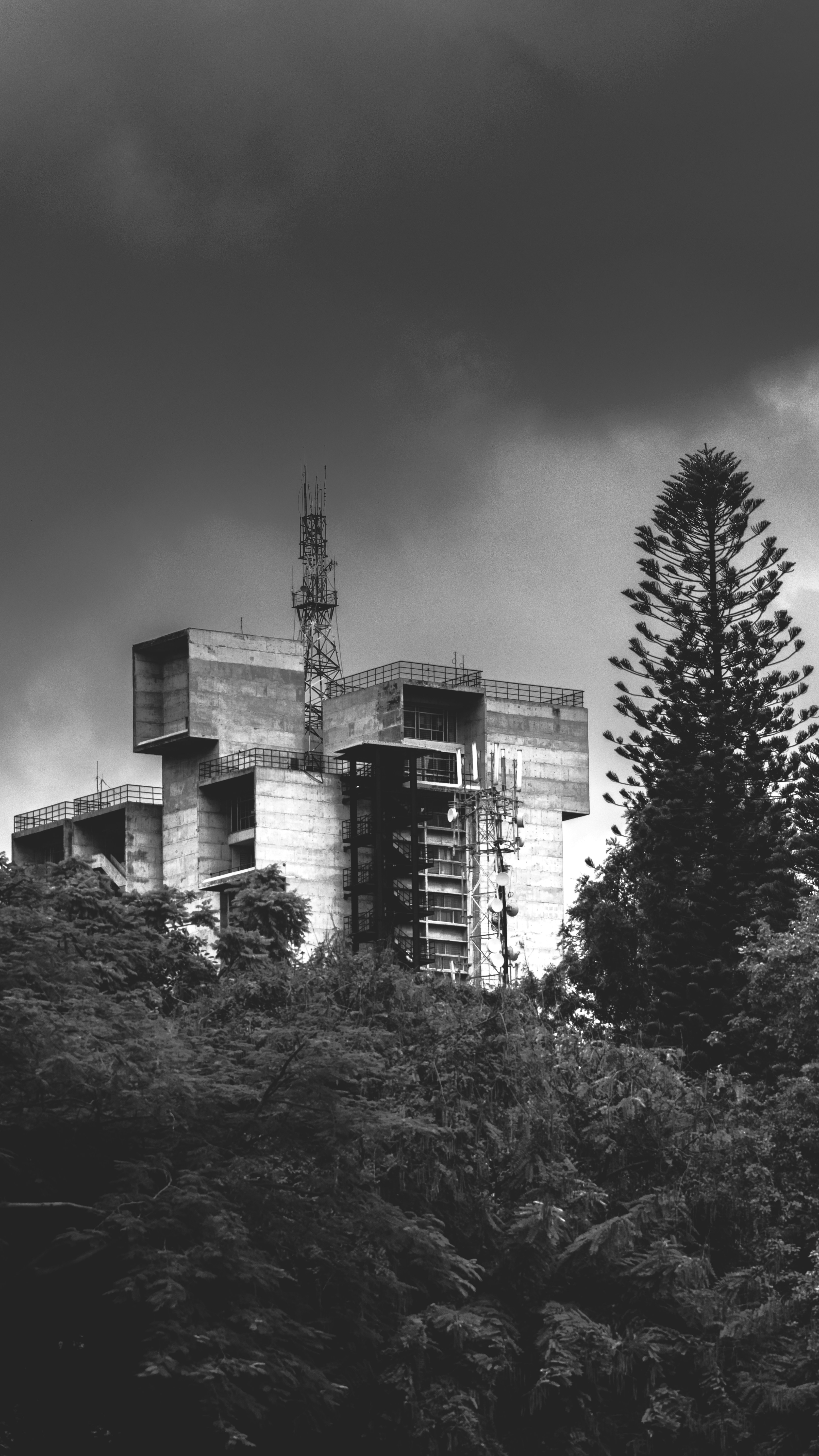 Grayscale Photography Of Trees And Building During Daytime Photo