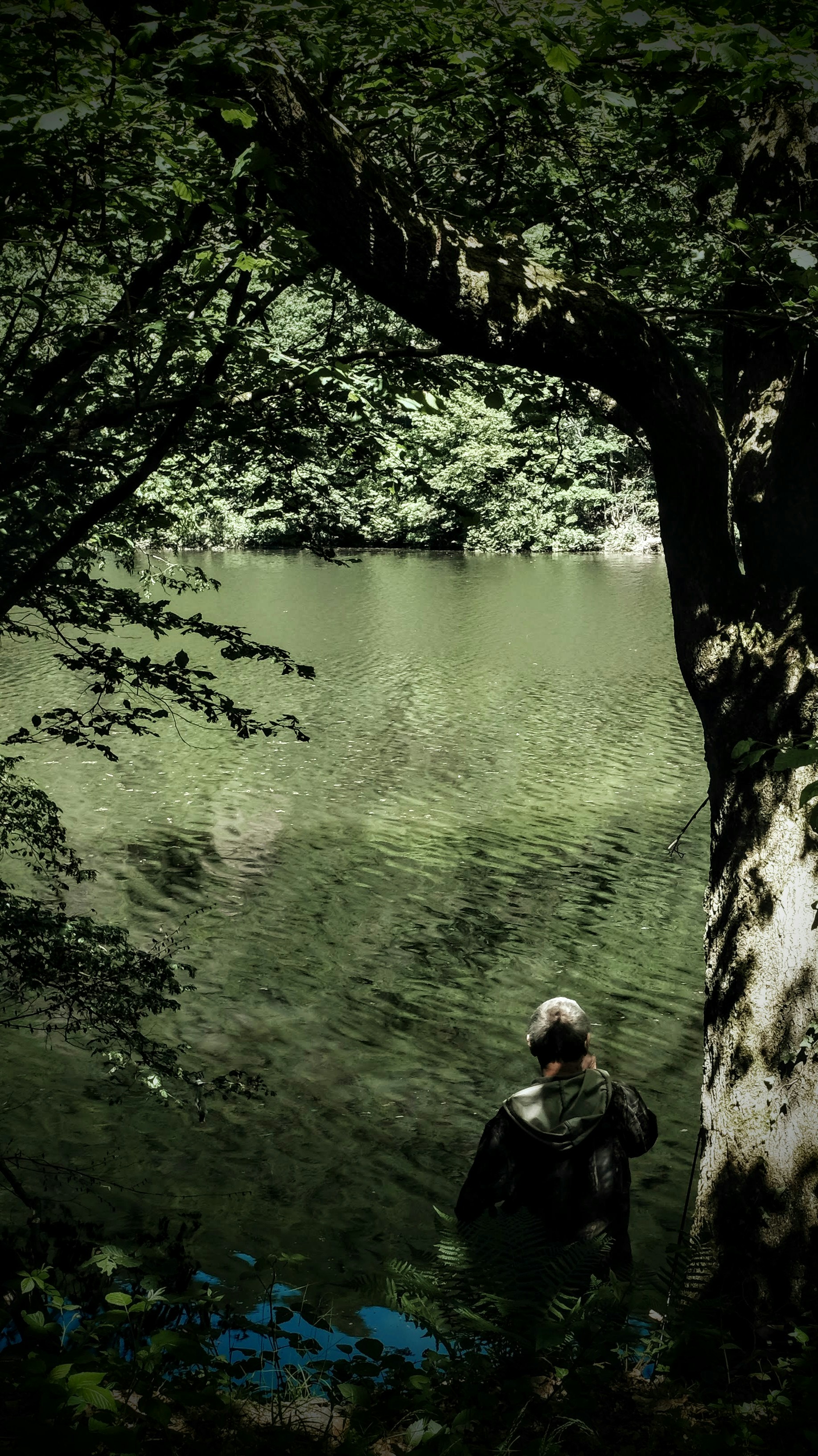 Man Standing Under Tree In River Bank Photo Free Plant Image On